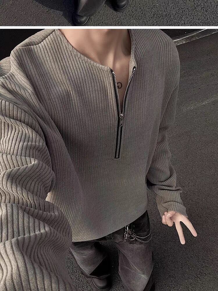 MIST メンズ M〜3XL 個性的 リブロンT カットソー 2025秋 個性的 病みかっこいい メンズファッション 大きサイズ ユニセックス 韓国系 mist25081201