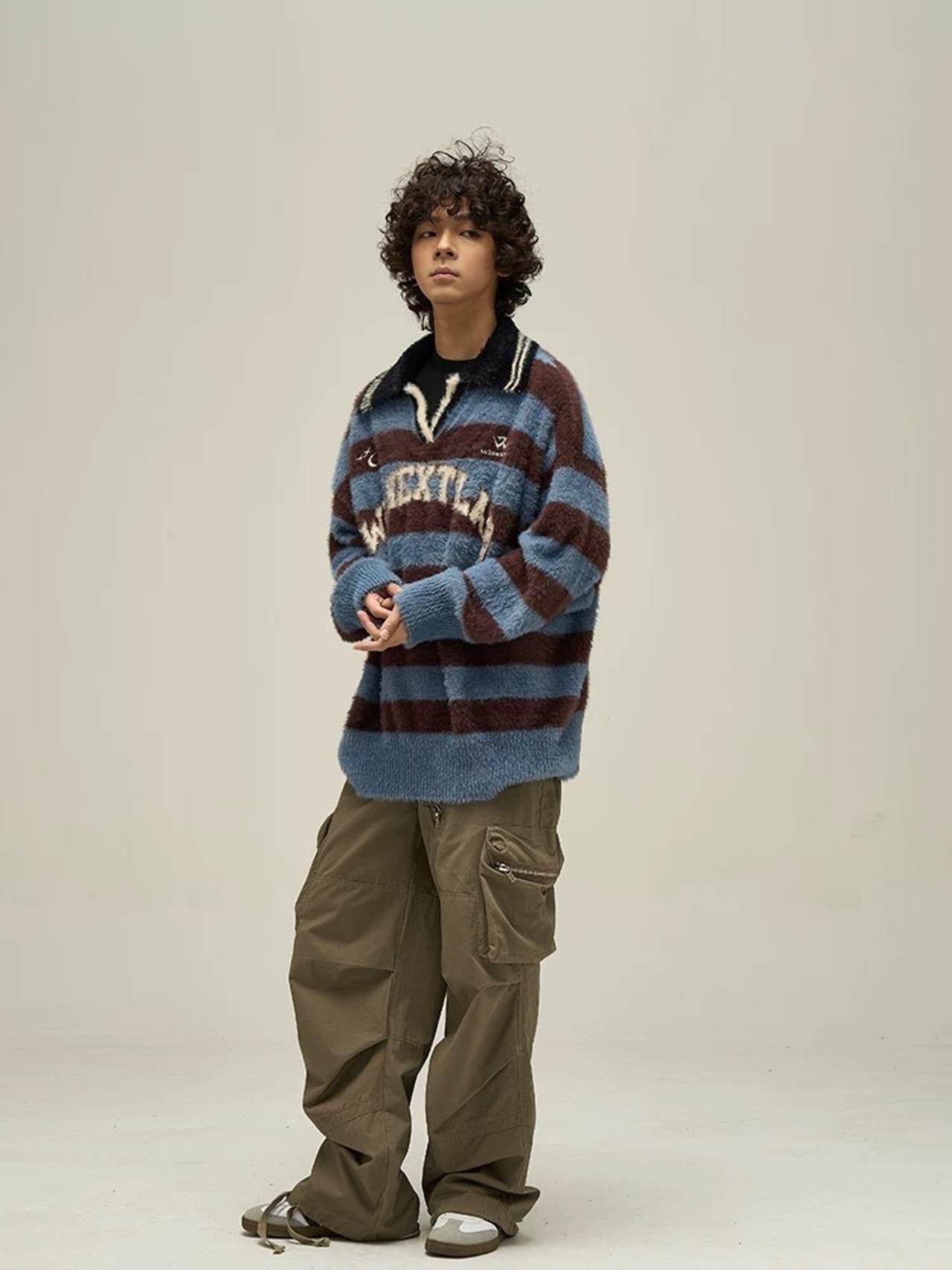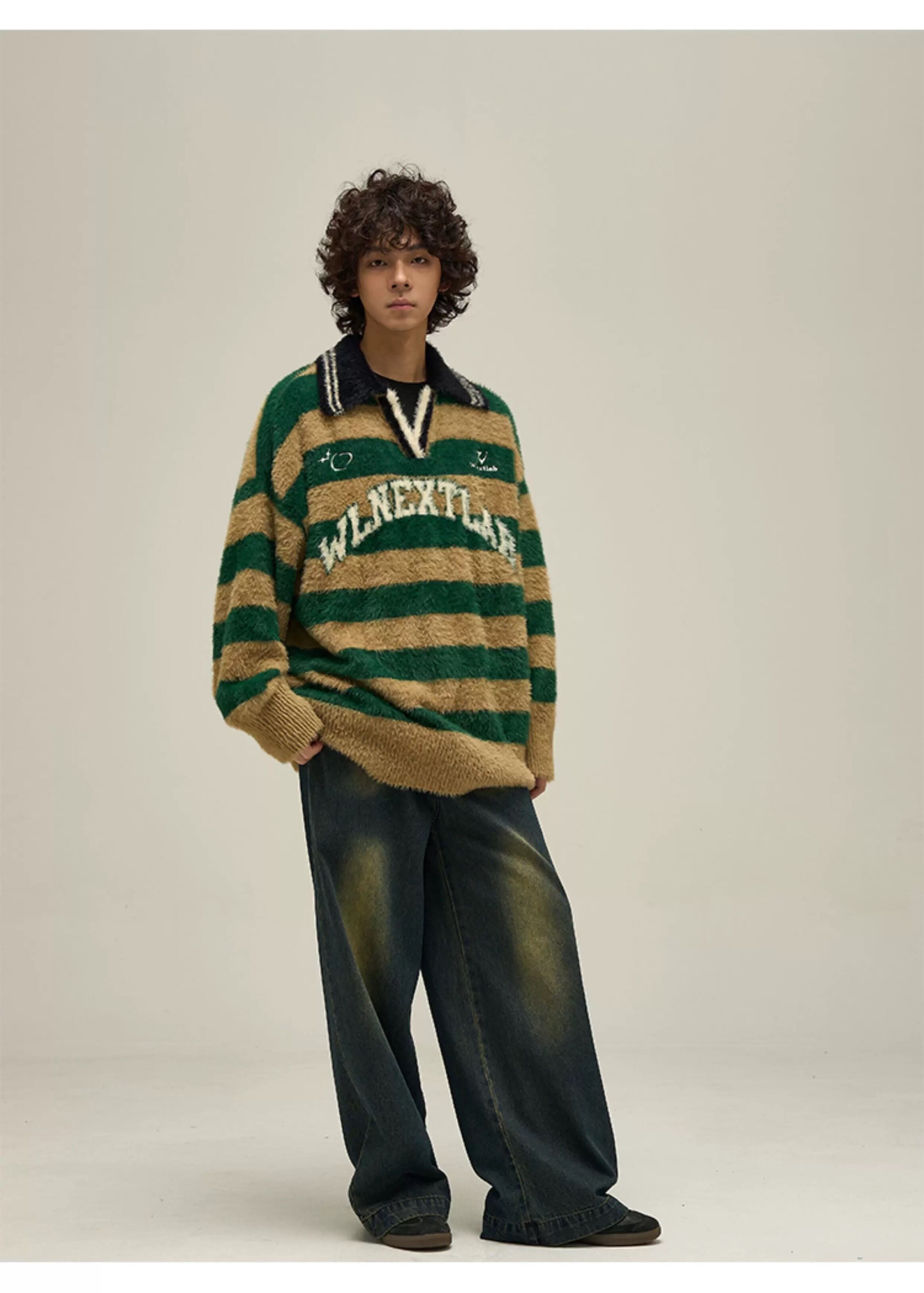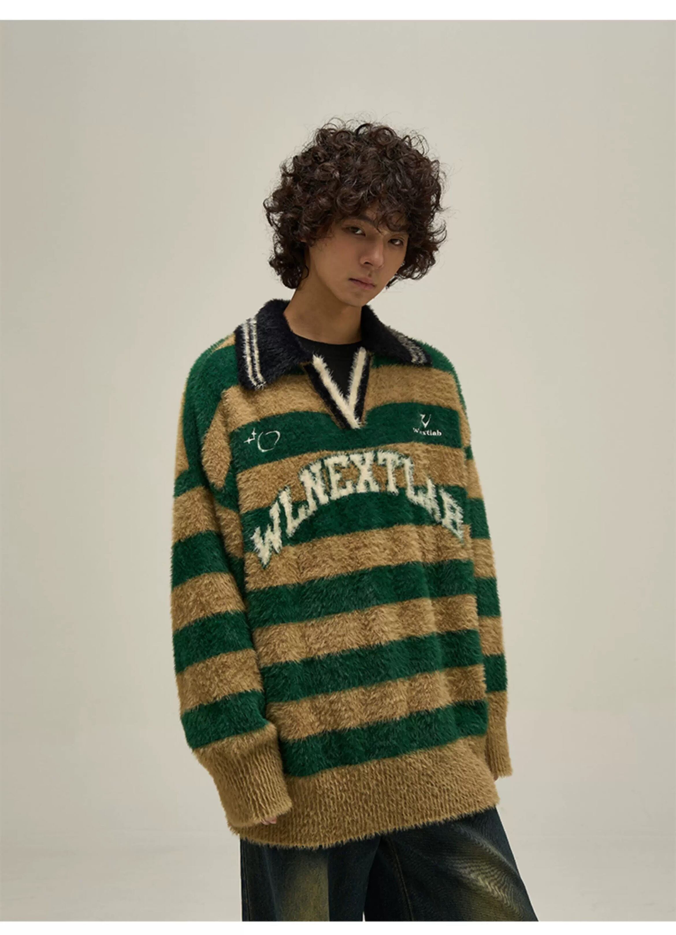 MIST メンズ S〜XL 個性的 ボーダーニット 2025秋冬 個性的 病みかっこいい メンズファッション 大きサイズ ユニセックス 韓国系 mist25103101