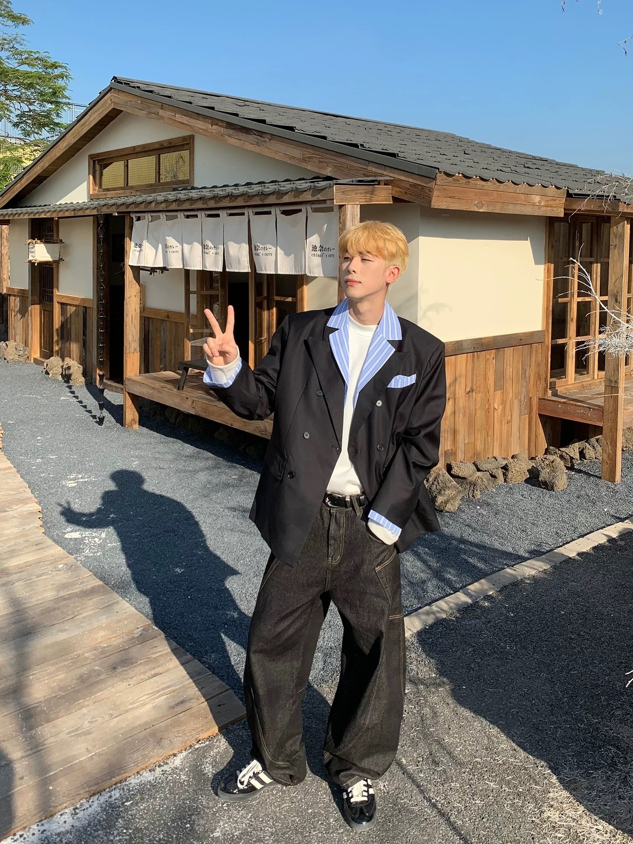 MIST メンズ M〜XL 個性的 ストライプジャケットコート 2025秋冬 個性的 病みかっこいい メンズファッション 大きサイズ ユニセックス 韓国系 mist25110301