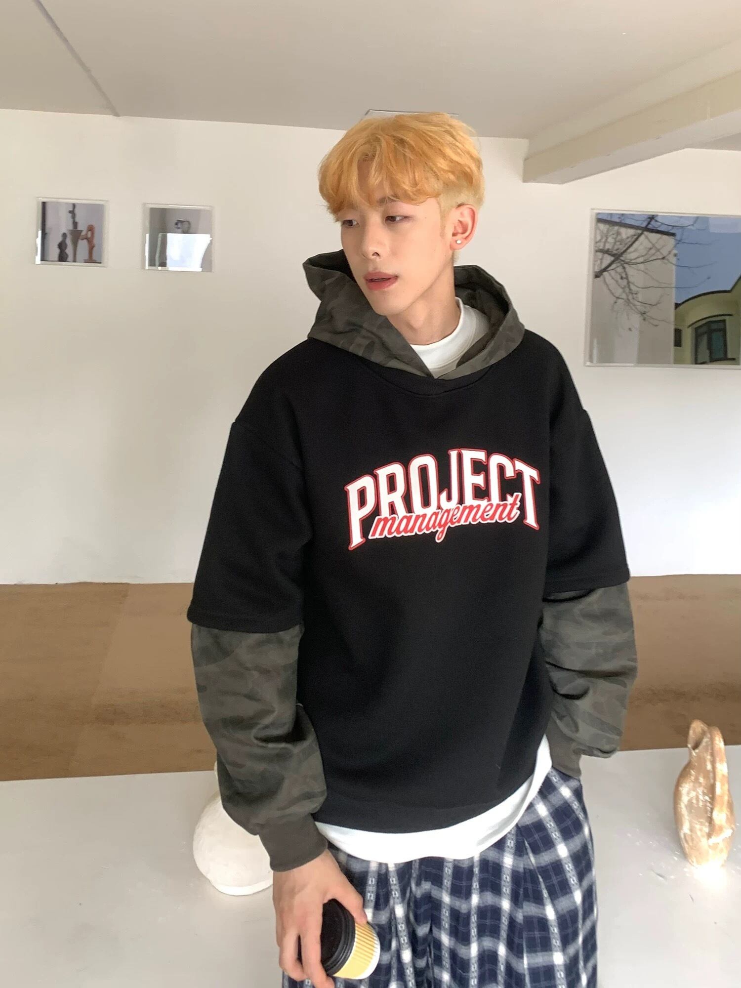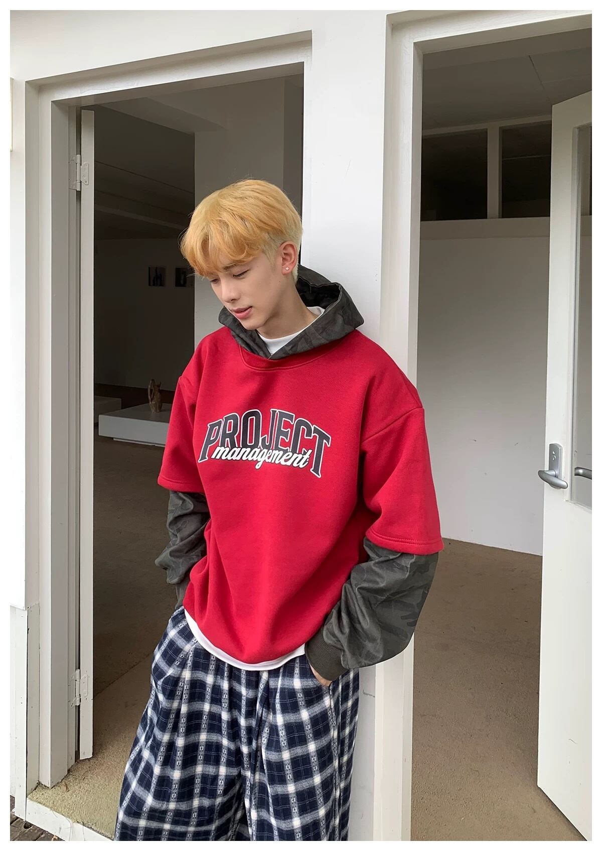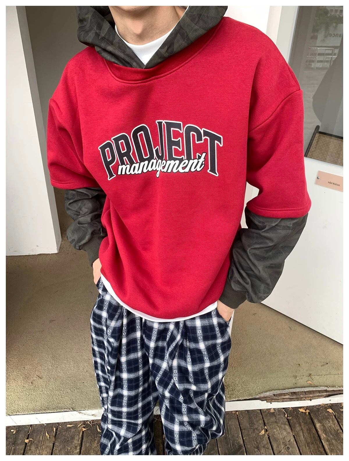 MIST メンズ M〜XL 個性的 重ね着風フード付きトレーナー 2025秋冬 個性的 病みかっこいい メンズファッション 大きサイズ ユニセックス 韓国系 mist25110701