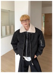 MIST メンズ M〜XL 個性的 ファー付きムートンジャケット 2025秋冬 個性的 病みかっこいい メンズファッション 大きサイズ ユニセックス 韓国系 mist25111001