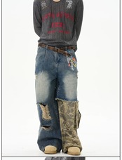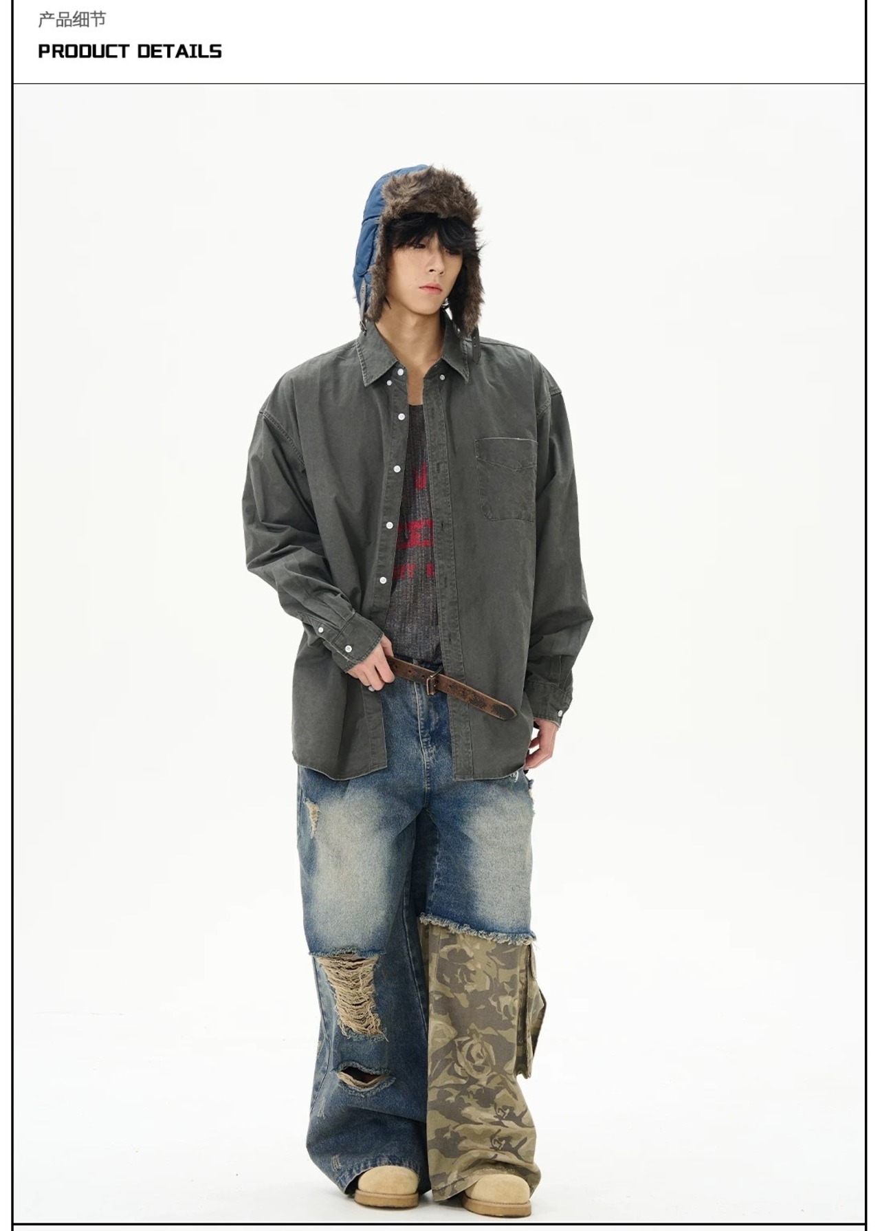 MIST メンズ M〜2XL 個性的 迷彩リメイク落書き風デニム 2025秋冬 個性的 病みかっこいい メンズファッション 大きサイズ ユニセックス 韓国系 mist25111201