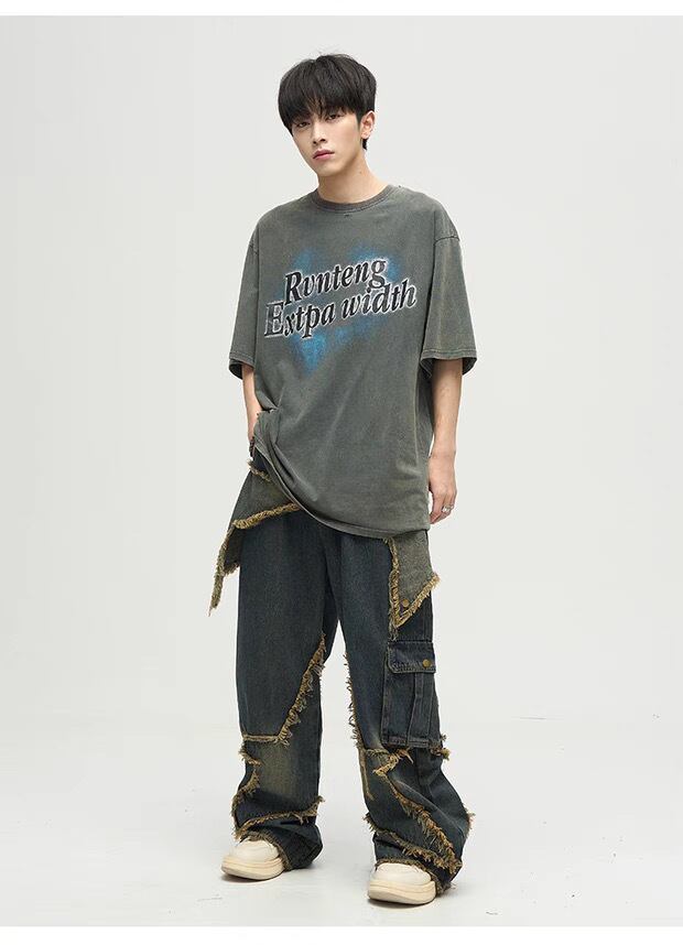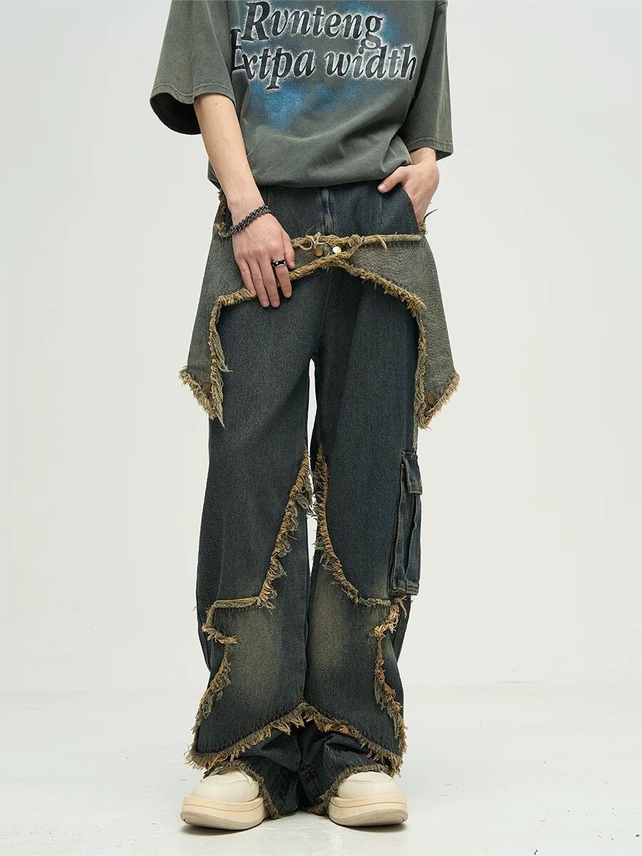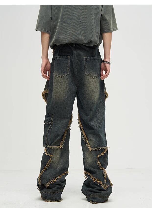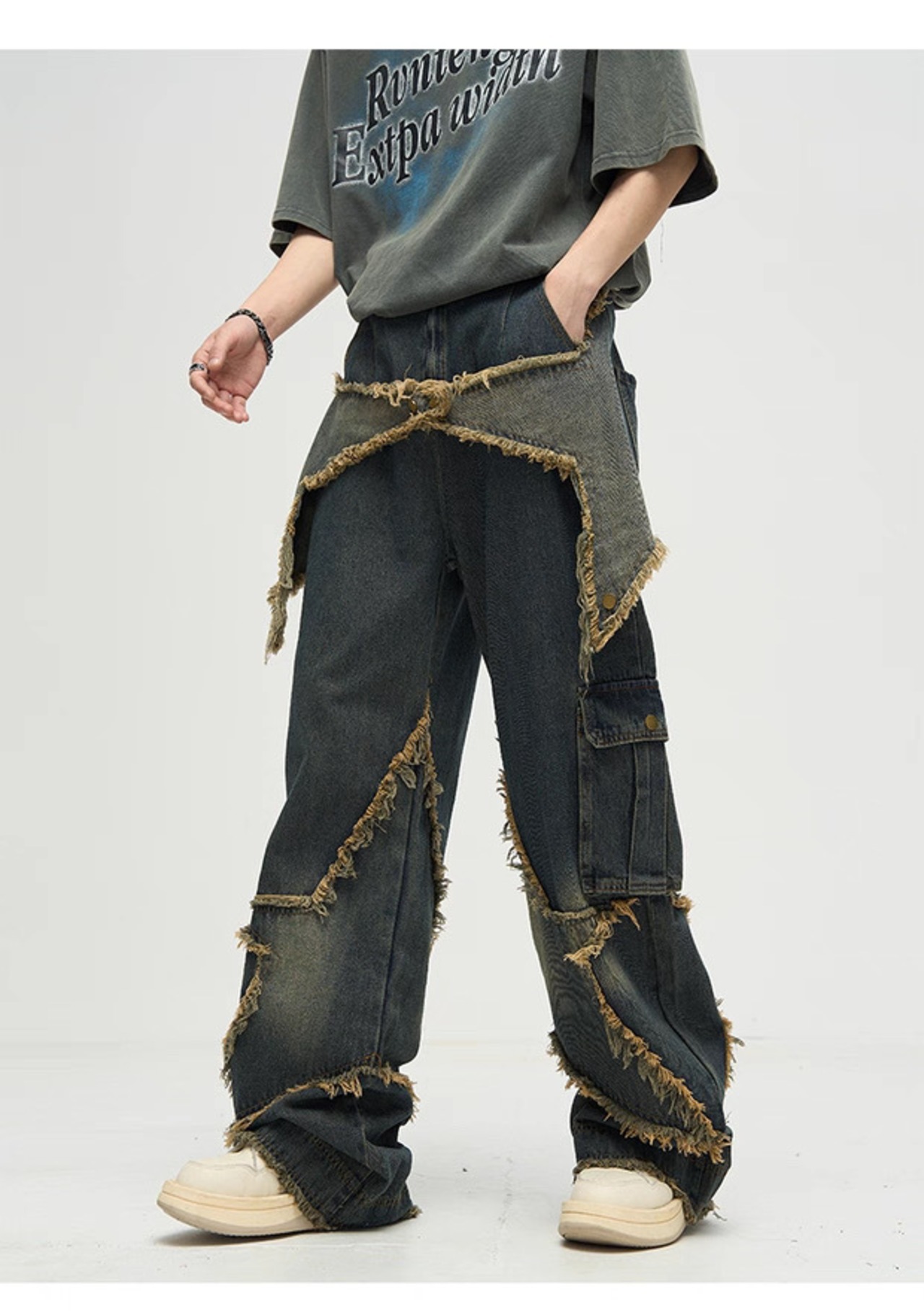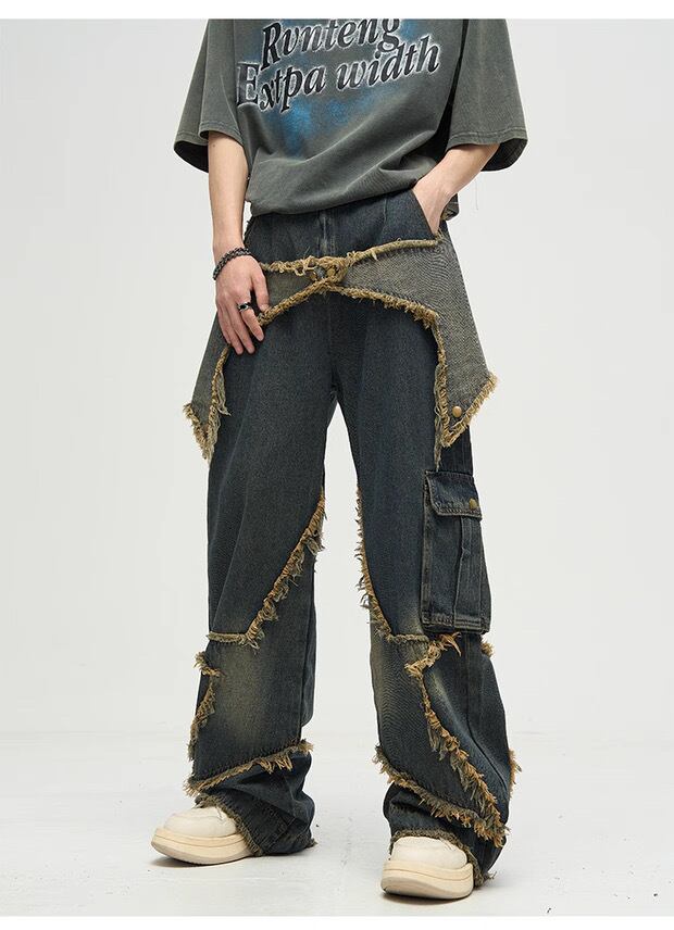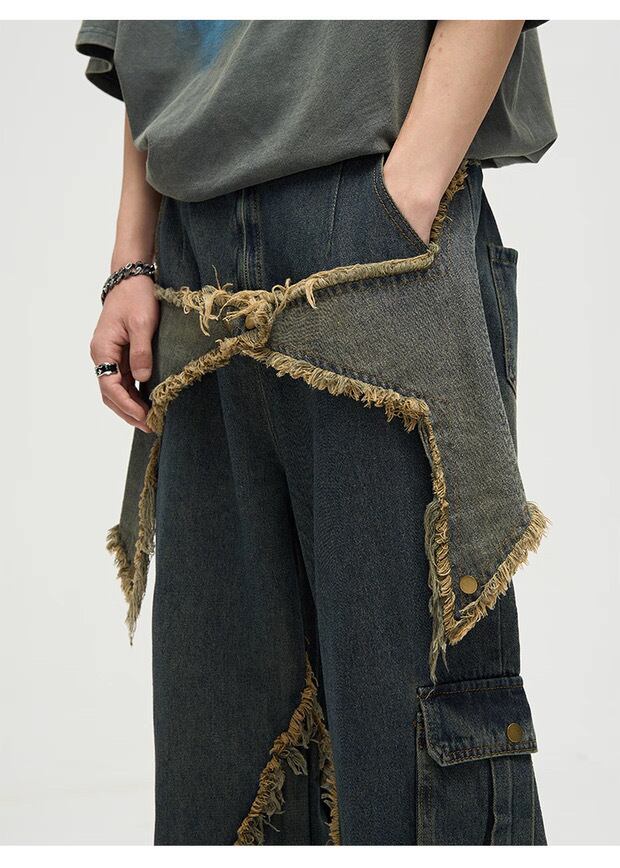 MIST メンズ S〜2XL 個性的 レイヤードスターフリンジデニム 2025秋冬 個性的 病みかっこいい メンズファッション 大きサイズ ユニセックス 韓国系 mist25111301