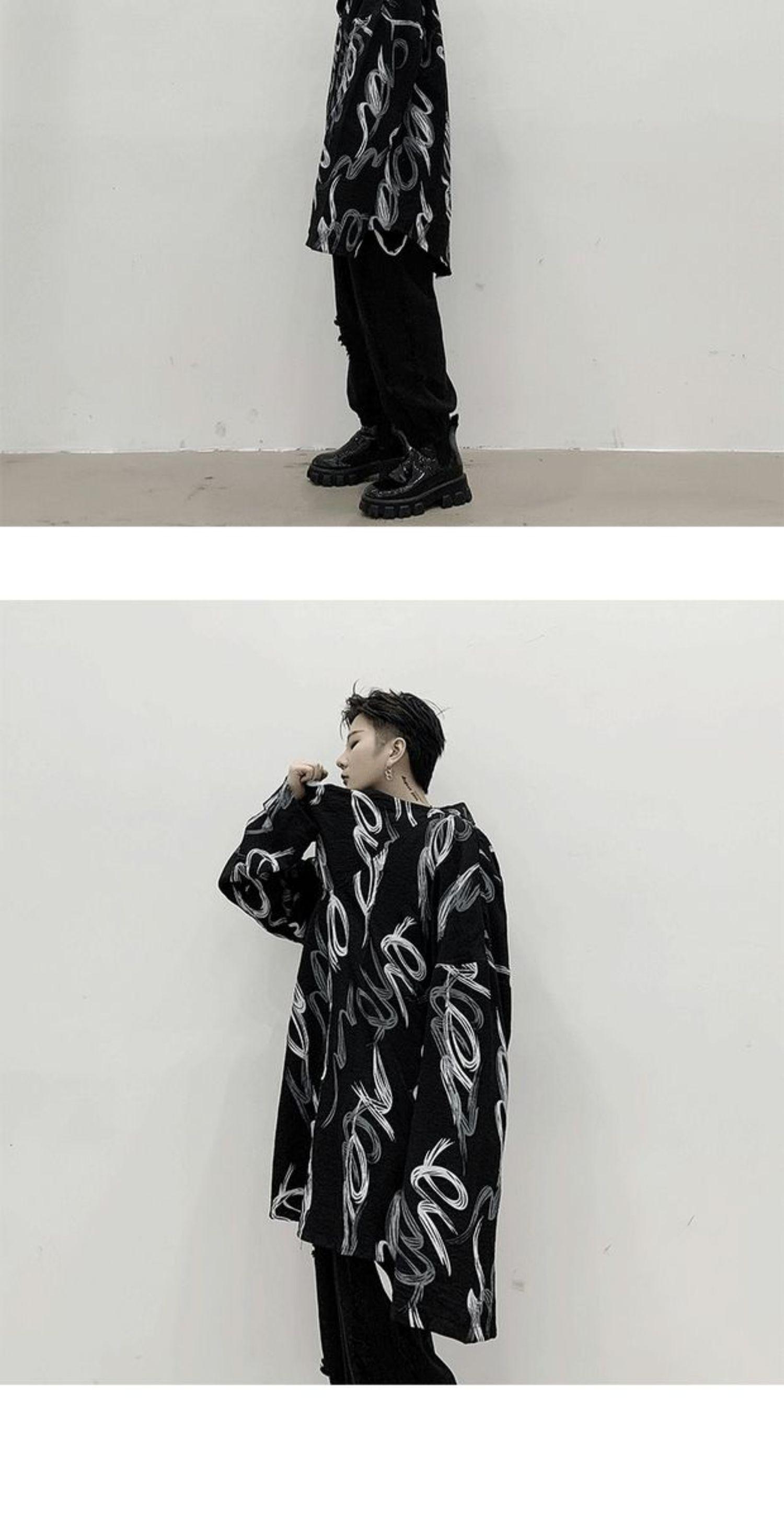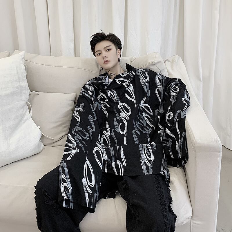 病みカッコイイ メンズファッション ストリートファッション ヒップホップ 個性的 裏原 オータムプリントTシャツ ルーズフードジャケット ロング 秋物 ✝ おしゃれ メンズ 81493415937