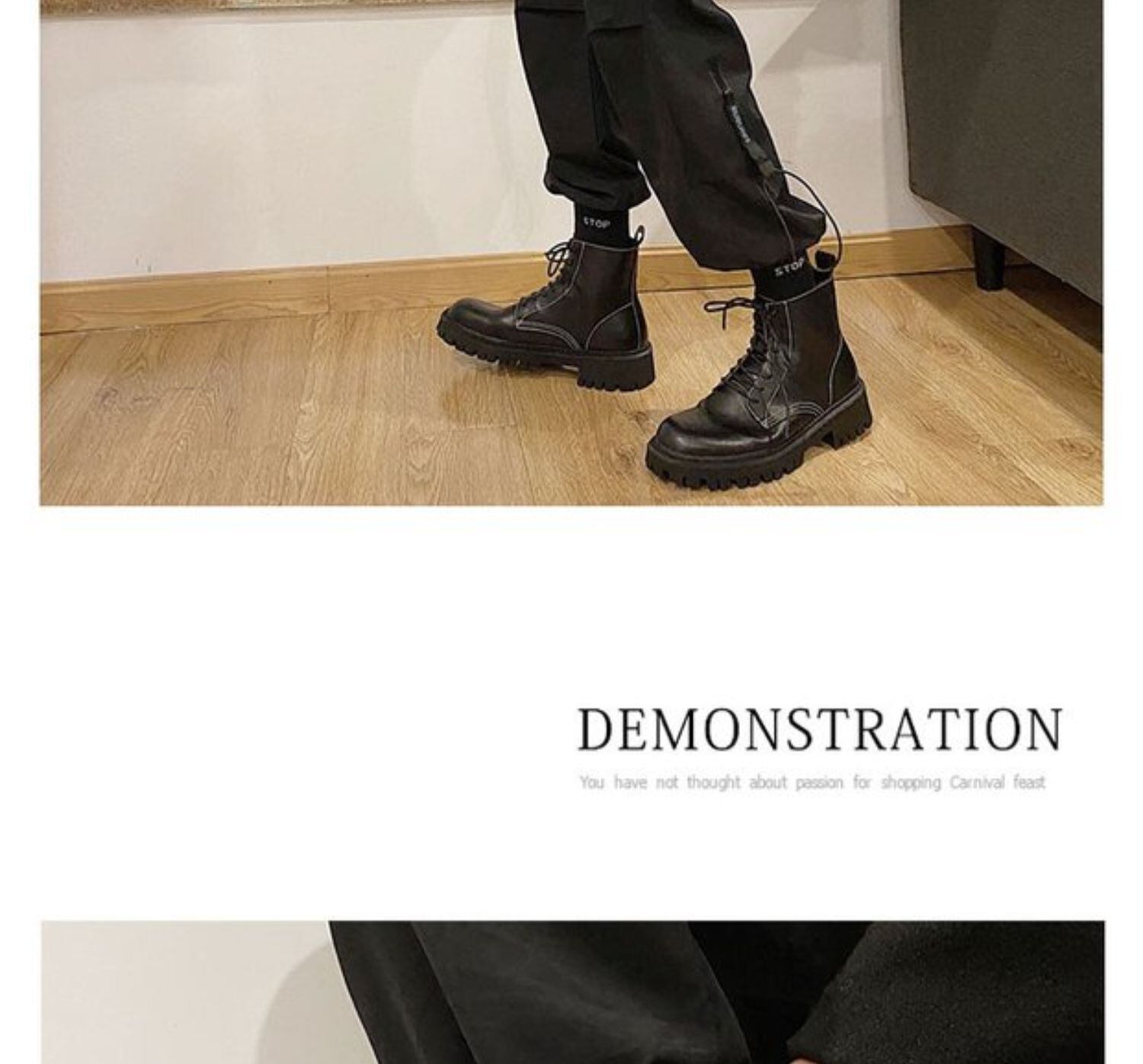 病みカッコイイ メンズファッション ストリートファッション ヒップホップ 個性的 裏原 スタンダードスタイルブラックブーツレザーショート レトロ 靴 シューズ ✝ おしゃれ メンズ 8724165208