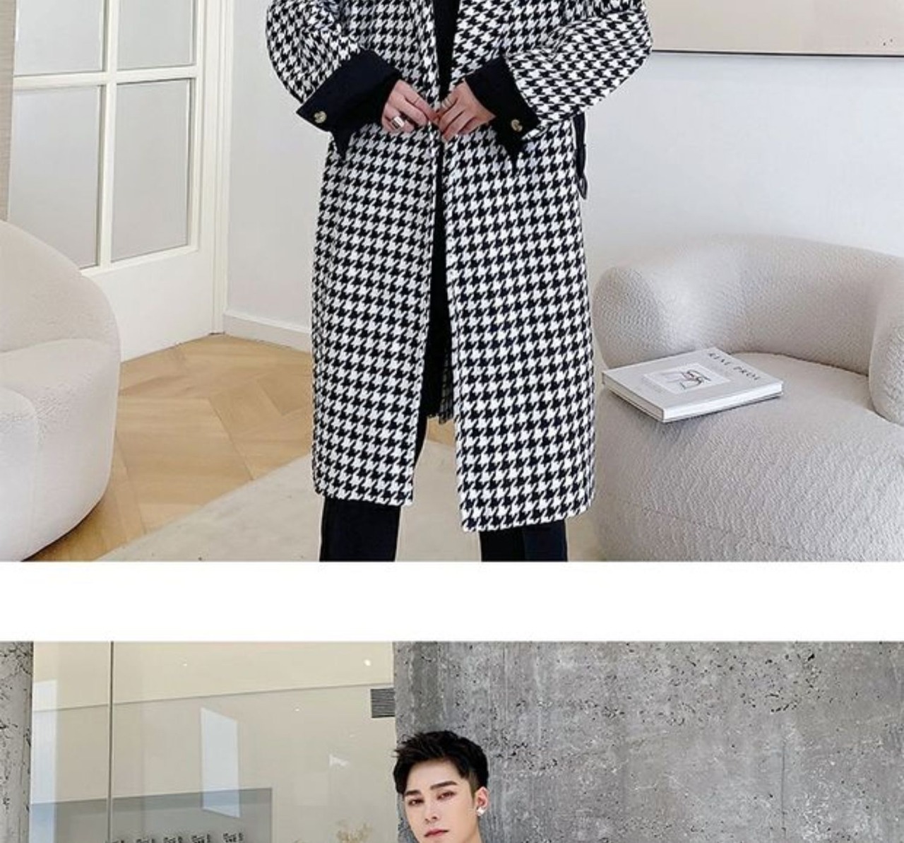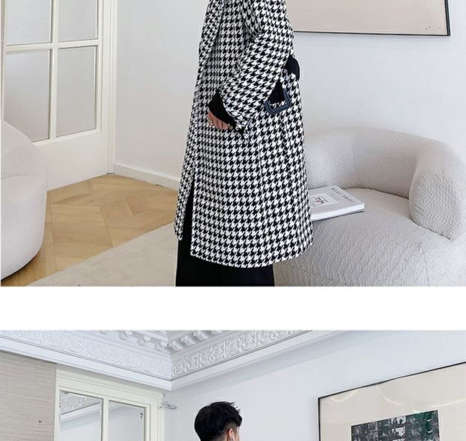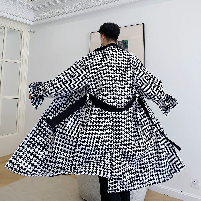 病みカッコイイ メンズファッション ストリートファッション ヒップホップ 個性的 裏原 ウィンタースタンダードスタイルブラックホワイト格子柄コート ルーズロング レトロ 冬物 ✝ おしゃれ メンズ 45279064510