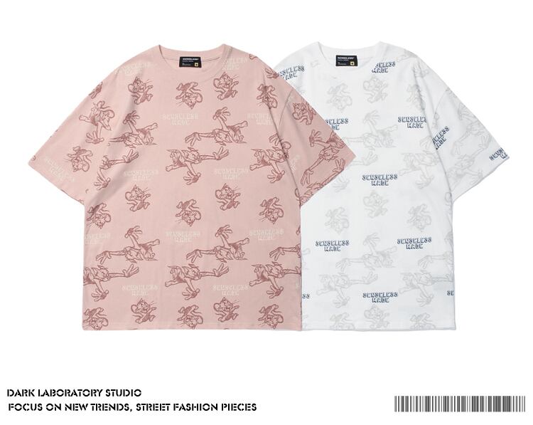 病みカッコイイ メンズファッション ストリートファッション ヒップホップ 個性的 裏原 サマープリント柄Tシャツ レディースルーズカジュアル コットン 夏物 ✝ メンズファッション47801443992