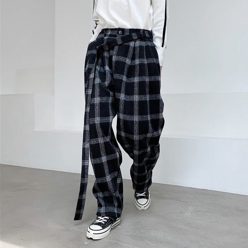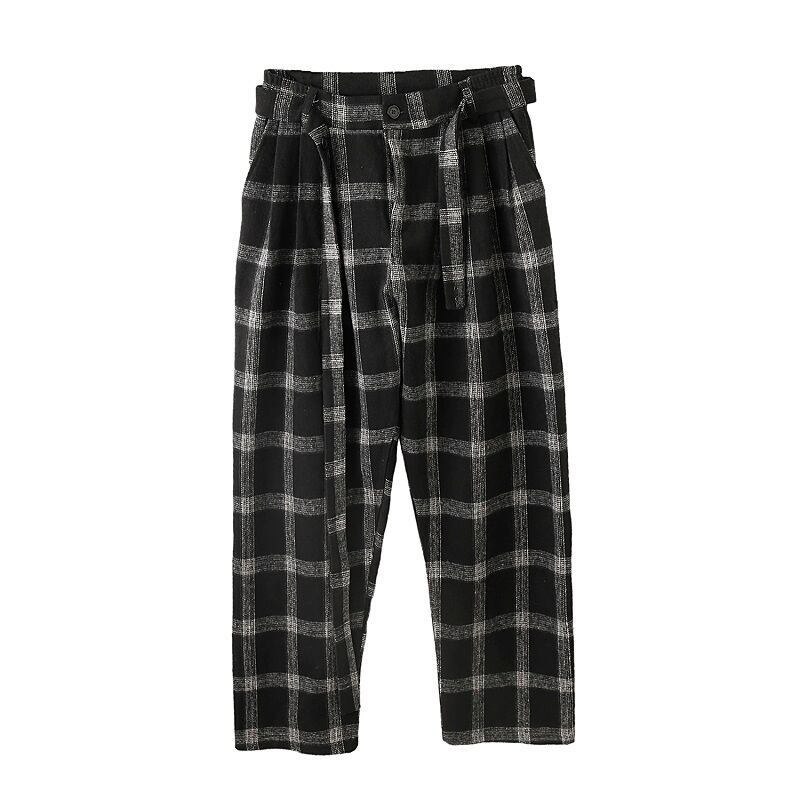 病みカッコイイ メンズファッション ストリートファッション ヒップホップ 個性的 裏原 オータムウィンタースタンダード格子柄パンツ ルーズハイウェスト薄手 レトロ 秋物 冬物 ✝ おしゃれ メンズ 84221434407