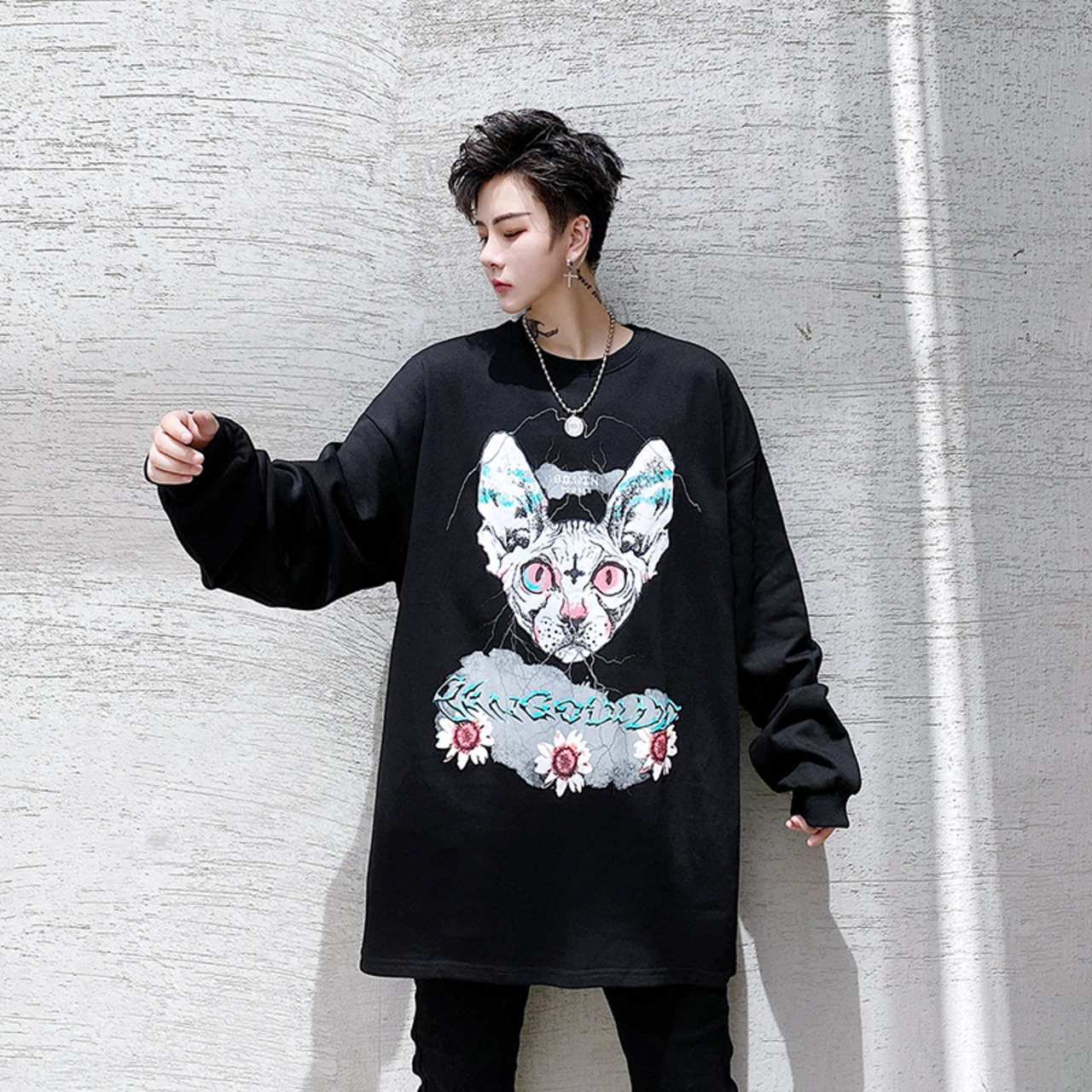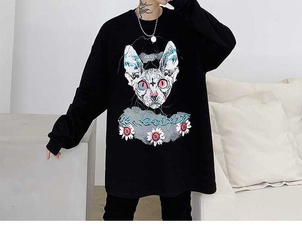 病みカッコイイ メンズファッション ストリートファッション ヒップホップ 個性的 裏原 スプリングオータムプリント柄プルオーバー セーター ルーズシャツ ジャケット 春物 秋物 ✝ おしゃれ メンズ 67229407817