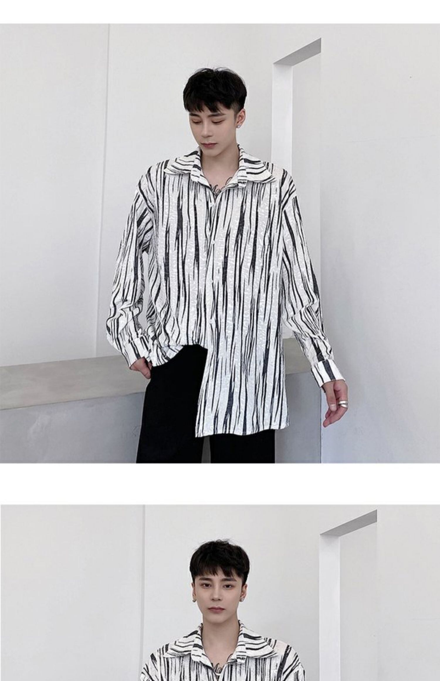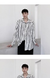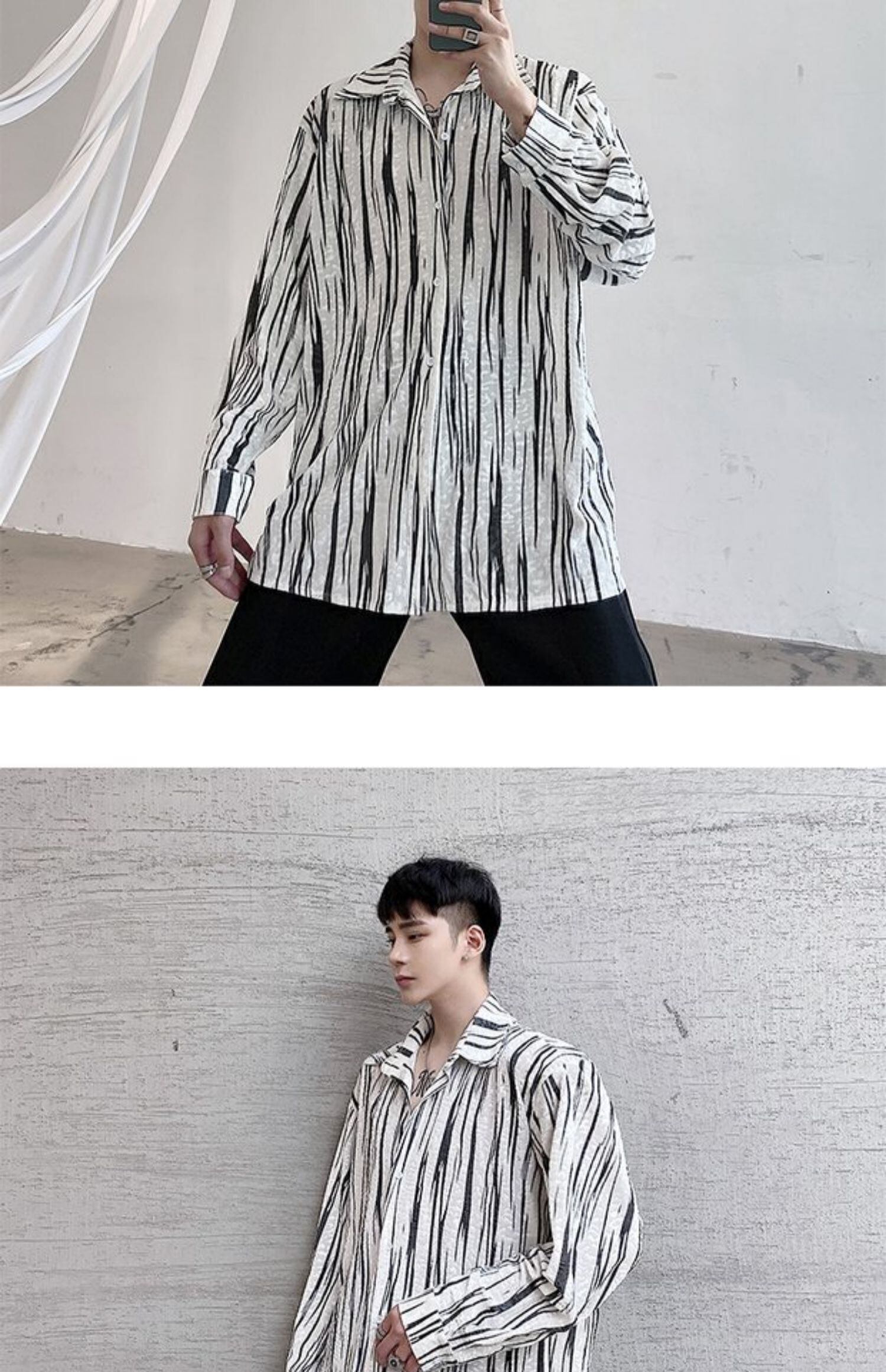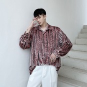 病みカッコイイ メンズファッション ストリートファッション ヒップホップ 個性的 裏原 ストライプシャツ ベルベットトップス スプリングオータムレッド 春物 秋物 ✝ おしゃれ メンズ 94540772493