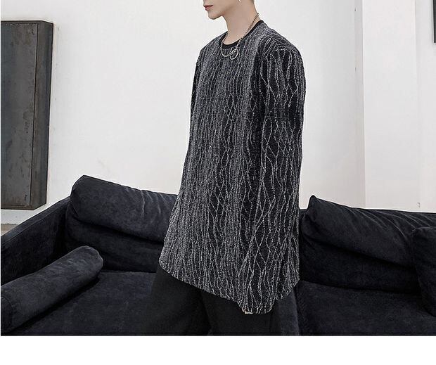 病みカッコイイ メンズファッション ストリートファッション ヒップホップ 個性的 裏原 オータムシルバーストライプTシャツ レッド ロング 秋物 シルク 銀 ✝ おしゃれ メンズ 81376946122