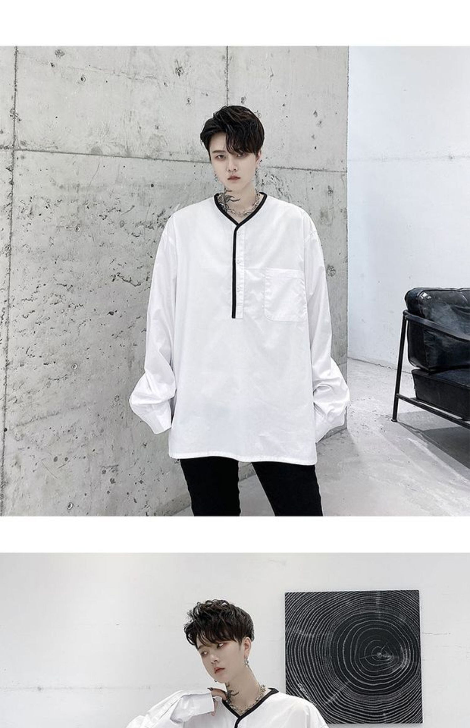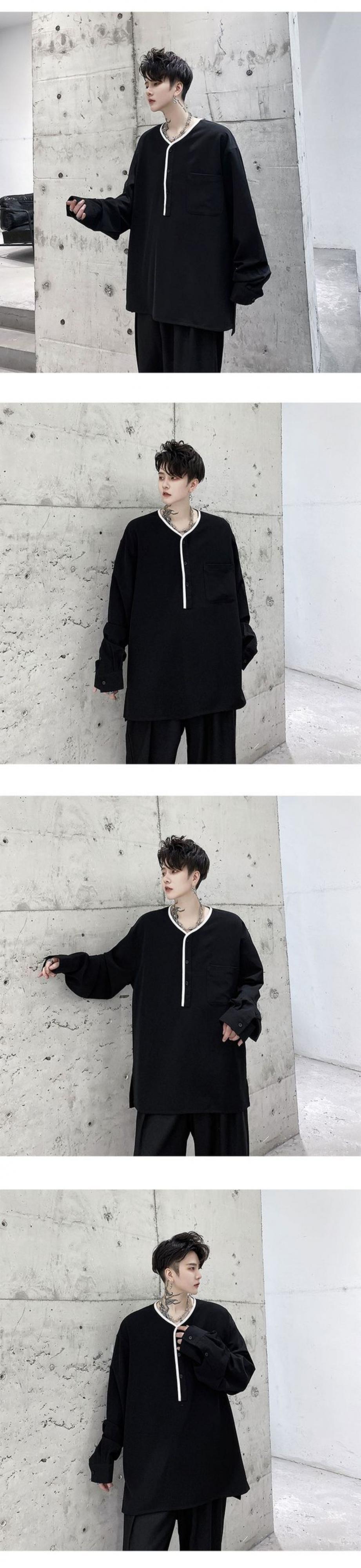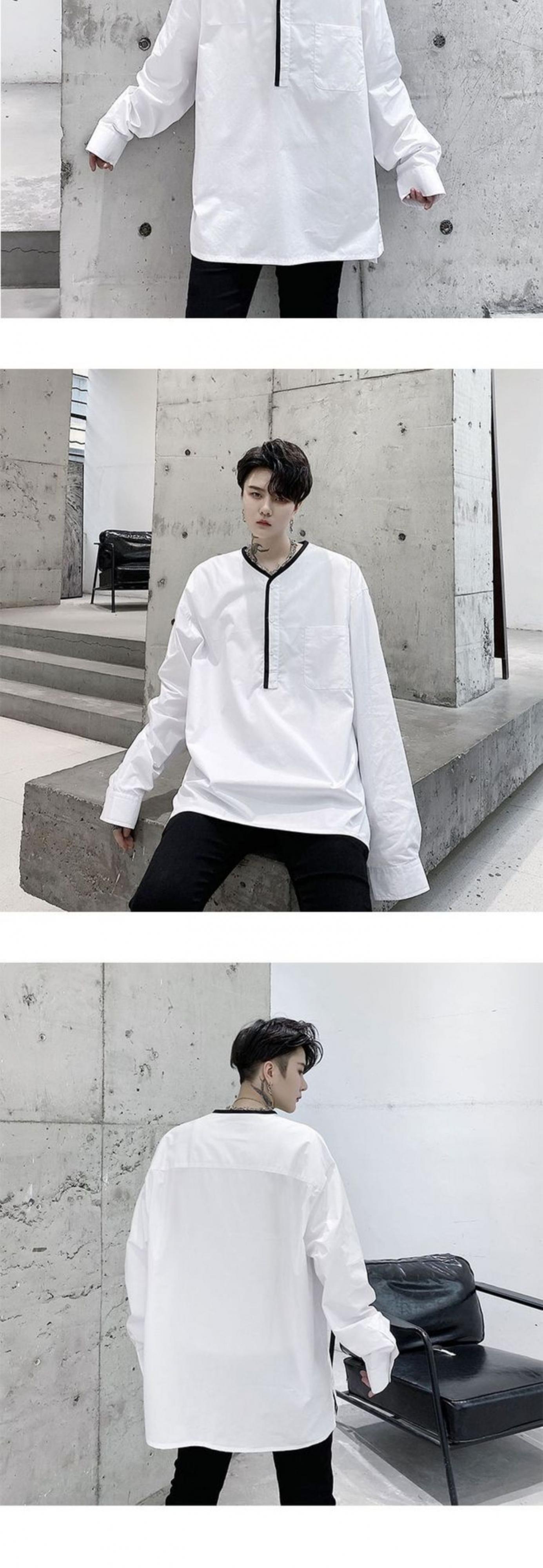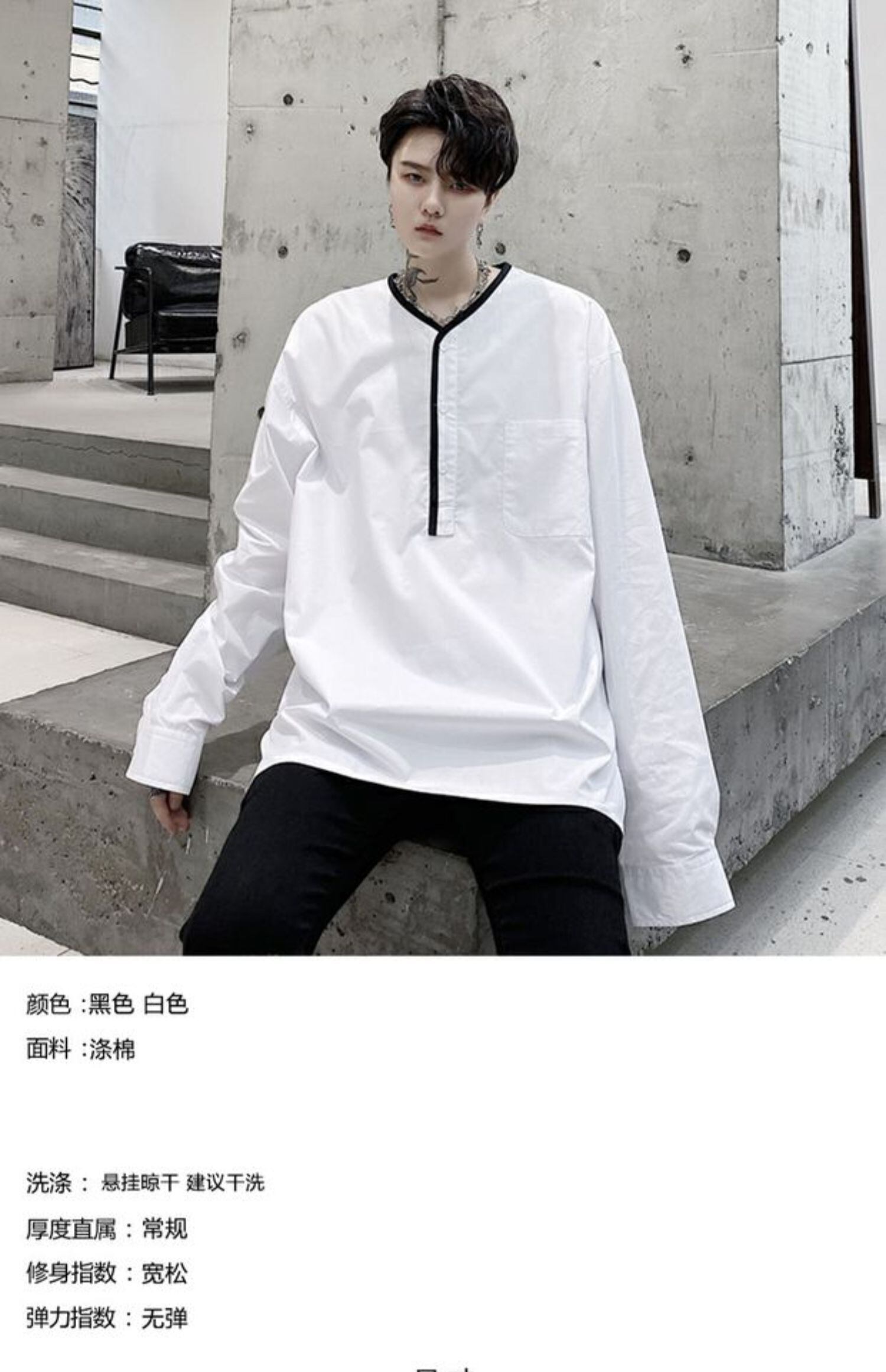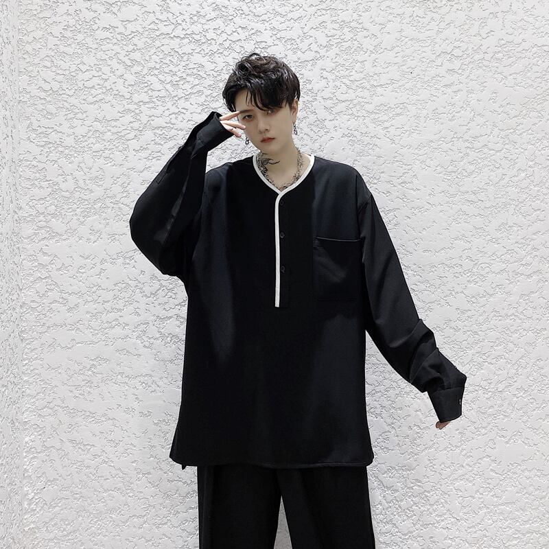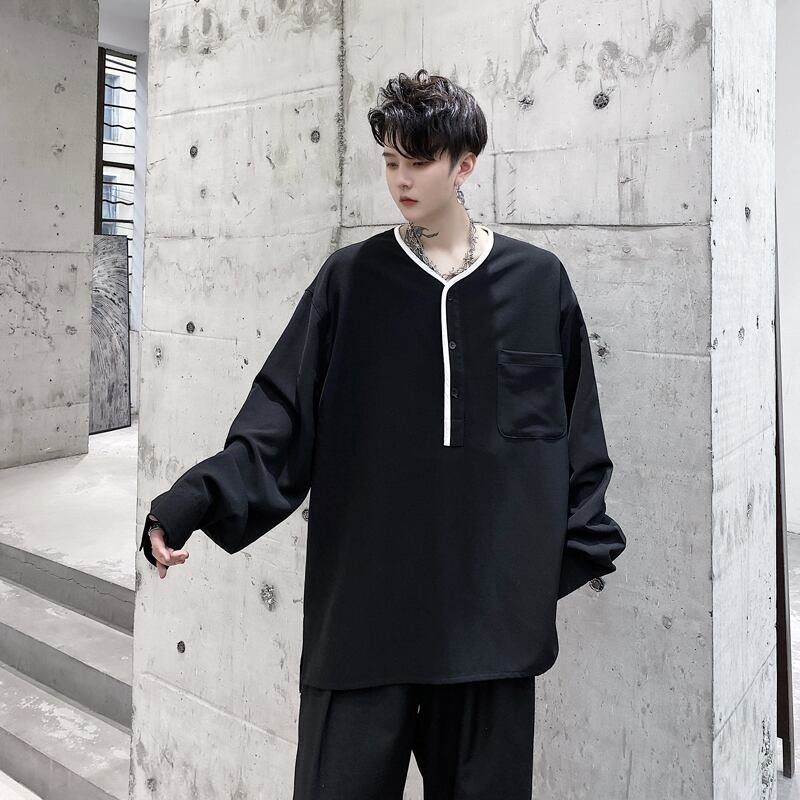 病みカッコイイ メンズファッション ストリートファッション ヒップホップ 個性的 裏原 オータムミニマリストスタイルカラープルオーバー シャツ ルーズトップス スタンダード レトロ 秋物 ピュア ✝ おしゃれ メンズ 27030183086