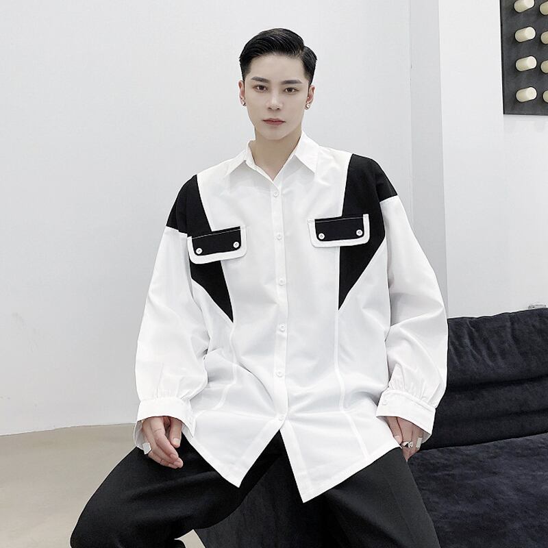 病みカッコイイ メンズファッション ストリートファッション ヒップホップ 個性的 裏原 カラーシャツ ルーズ ロング ステッチ ✝ おしゃれ メンズ 90979851882