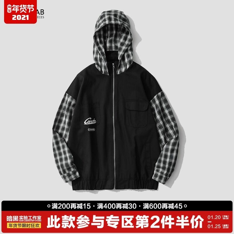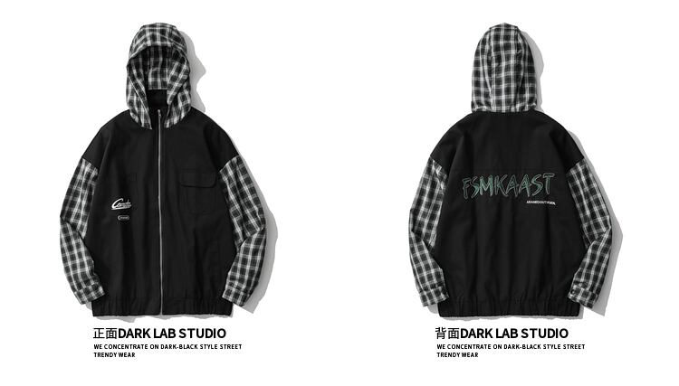 病みカッコイイ メンズファッション ストリートファッション ヒップホップ 個性的 裏原 スプリングスタンダード格子柄フードジャケット レディースルーズカジュアル レトロ ストリート 春物 ステッチ ✝ メンズファッション66273191900