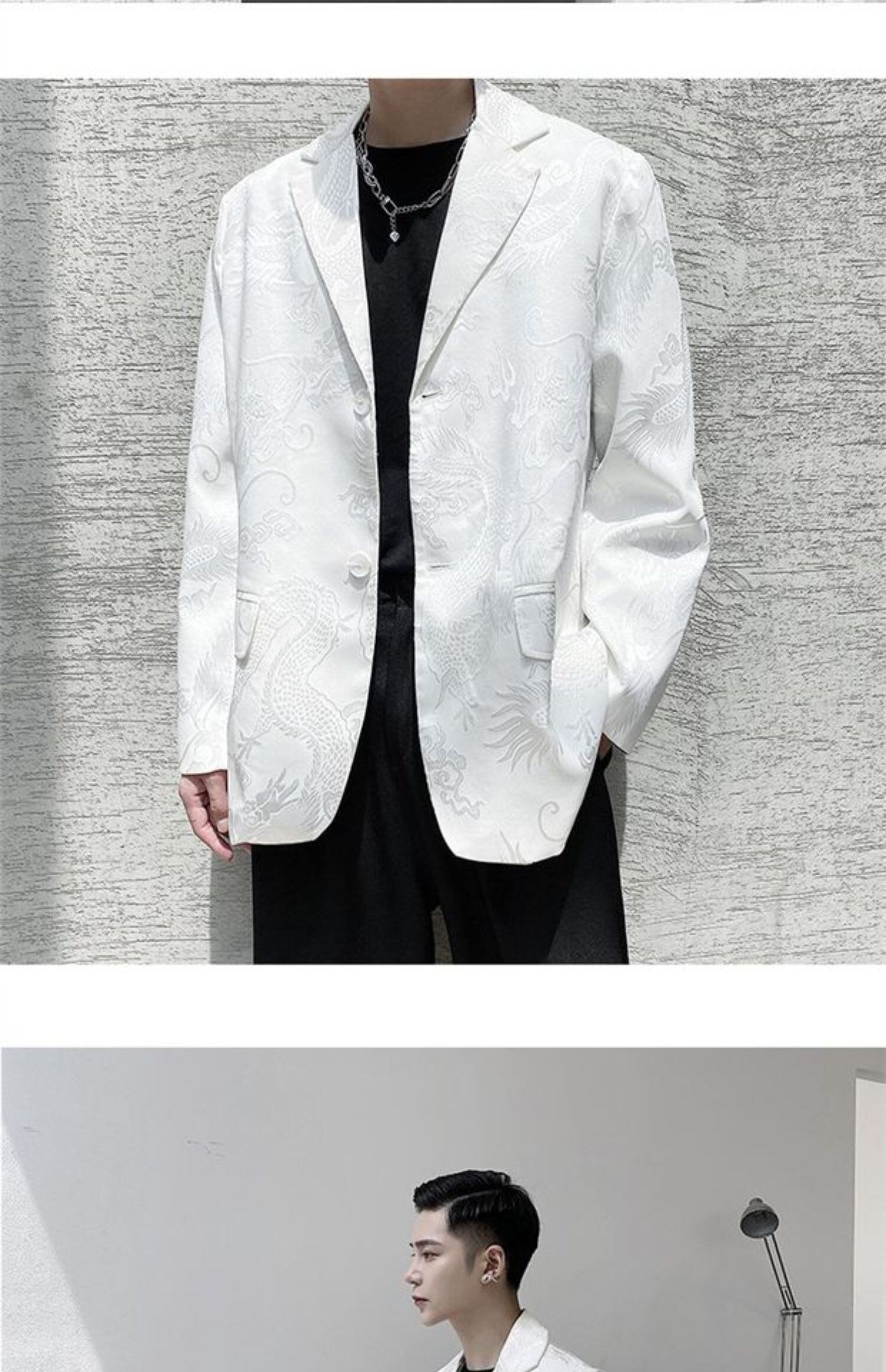 病みカッコイイ メンズファッション ストリートファッション ヒップホップ 個性的 裏原 オータムレッドスタンダードホワイトルーズダークパターンプリントカジュアルジャケット レトロ 秋物 ✝ おしゃれ メンズ 28631583815