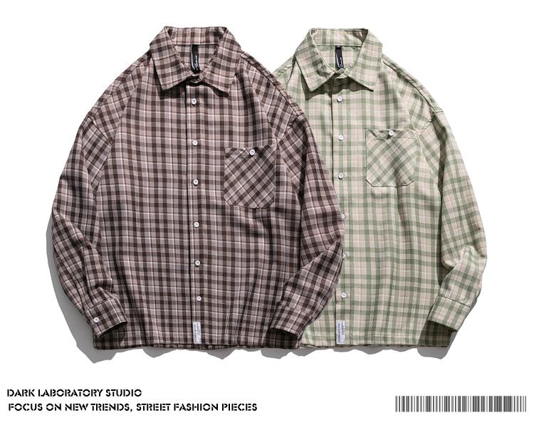 病みカッコイイ メンズファッション ストリートファッション ヒップホップ 個性的 裏原 スタンダード格子柄プリントシャツ レディースカジュアルルーズジャケット ロング レトロ ✝ メンズファッション67331150610