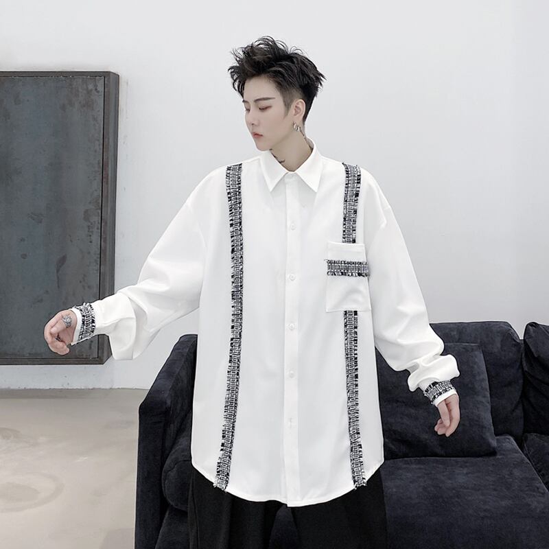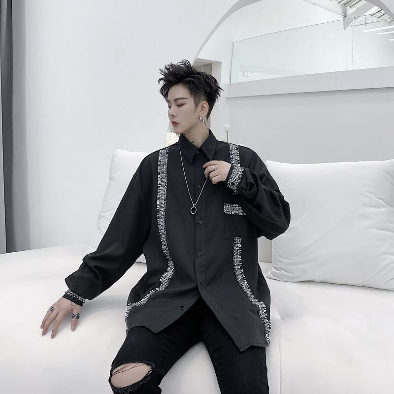 病みカッコイイ メンズファッション ストリートファッション ヒップホップ 個性的 裏原 オータムシャツ ルーズストライプカジュアル ロング 秋物 ✝ おしゃれ メンズ 99873294310