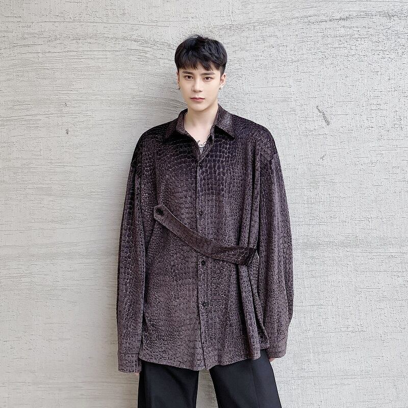病みカッコイイ メンズファッション ストリートファッション ヒップホップ 個性的 裏原 スプリングスタンダードベルベットシャツ ルーズシャツ ロング レトロ 春物 ドレス ✝ おしゃれ メンズ 19766103248