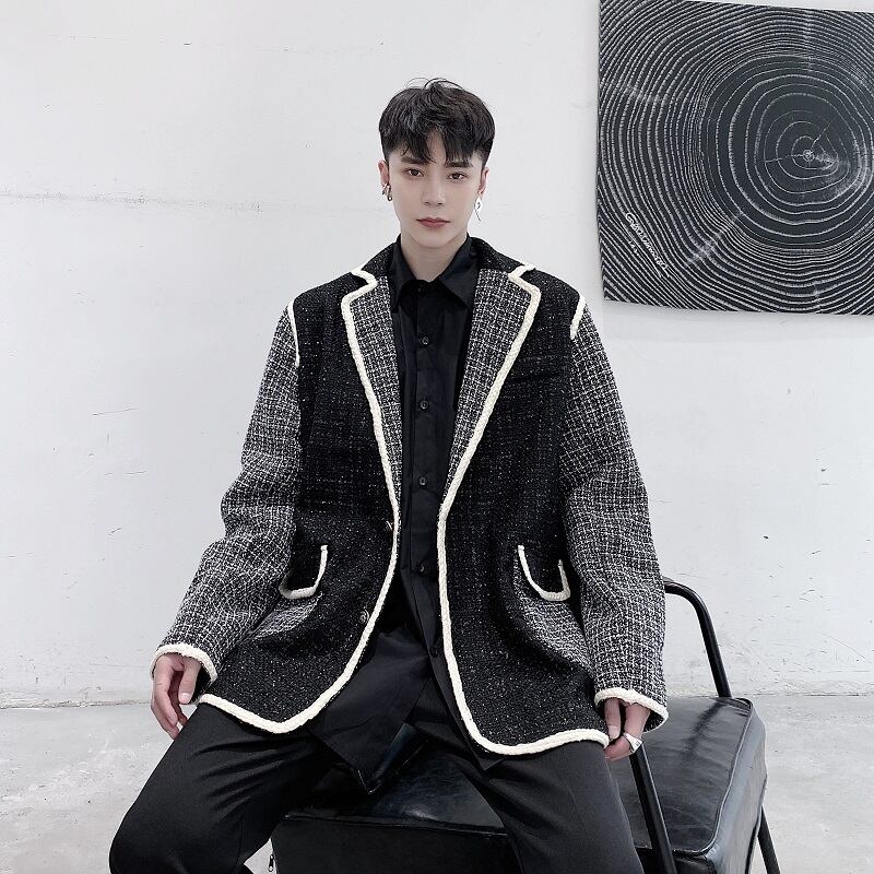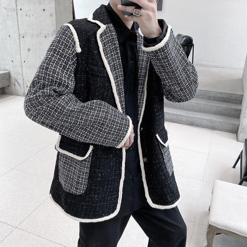 病みカッコイイ メンズファッション ストリートファッション ヒップホップ 個性的 裏原 オータムウィンタースタンダードツィードレッド格子柄ジャケット レトロ 秋物 冬物 ✝ おしゃれ メンズ 86903487461