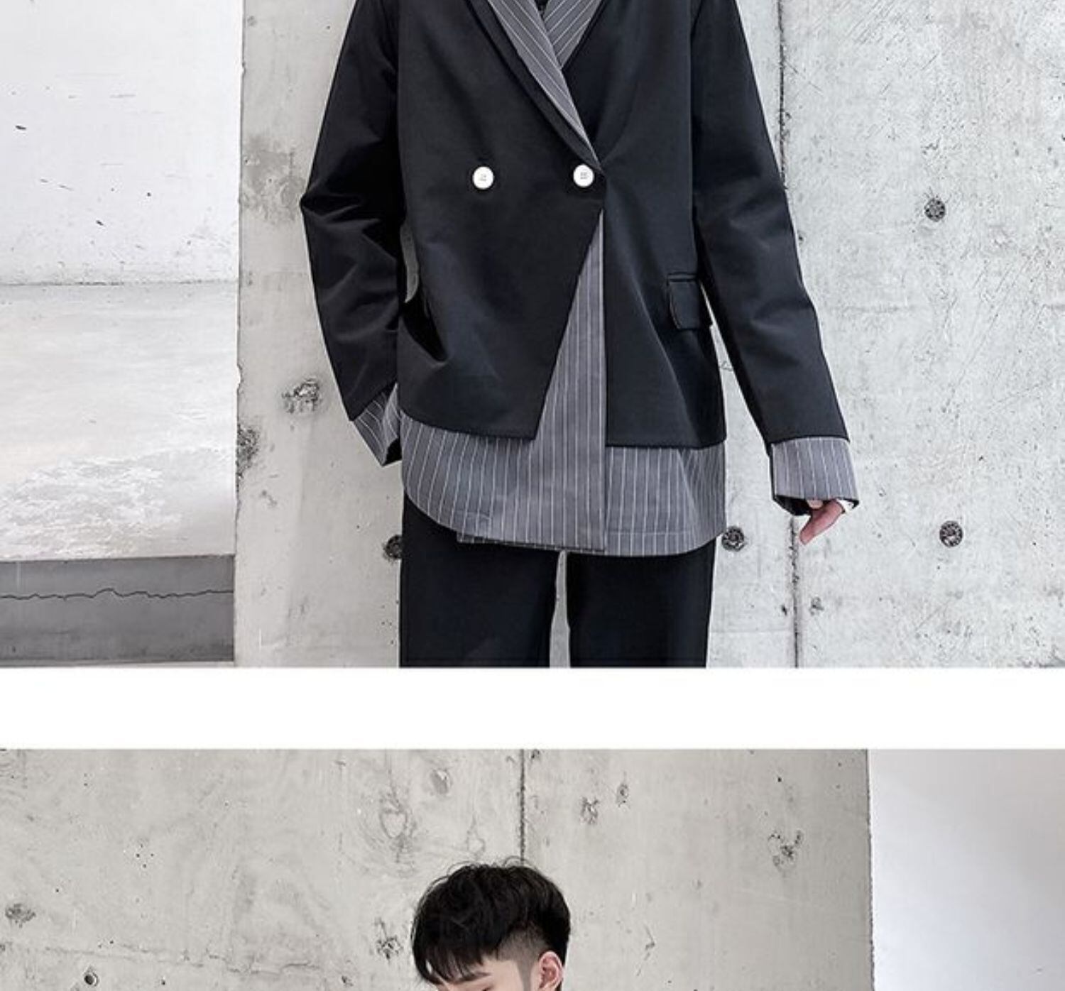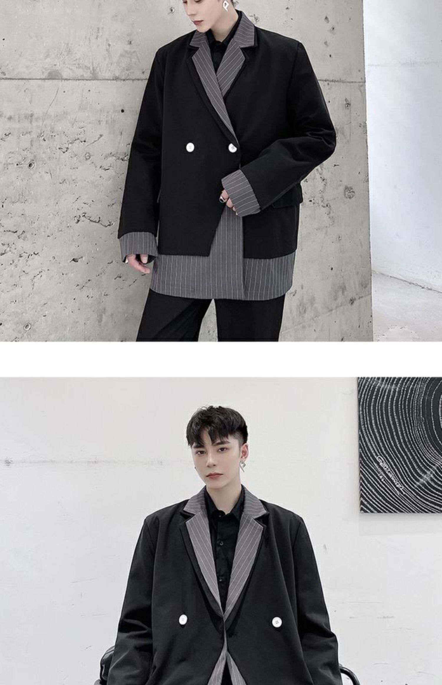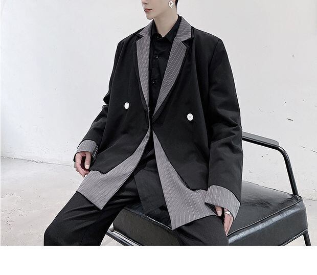 病みカッコイイ メンズファッション ストリートファッション ヒップホップ 個性的 裏原 カラーストライプカジュアルルーズジャケット ステッチ ✝ おしゃれ メンズ 71612663100