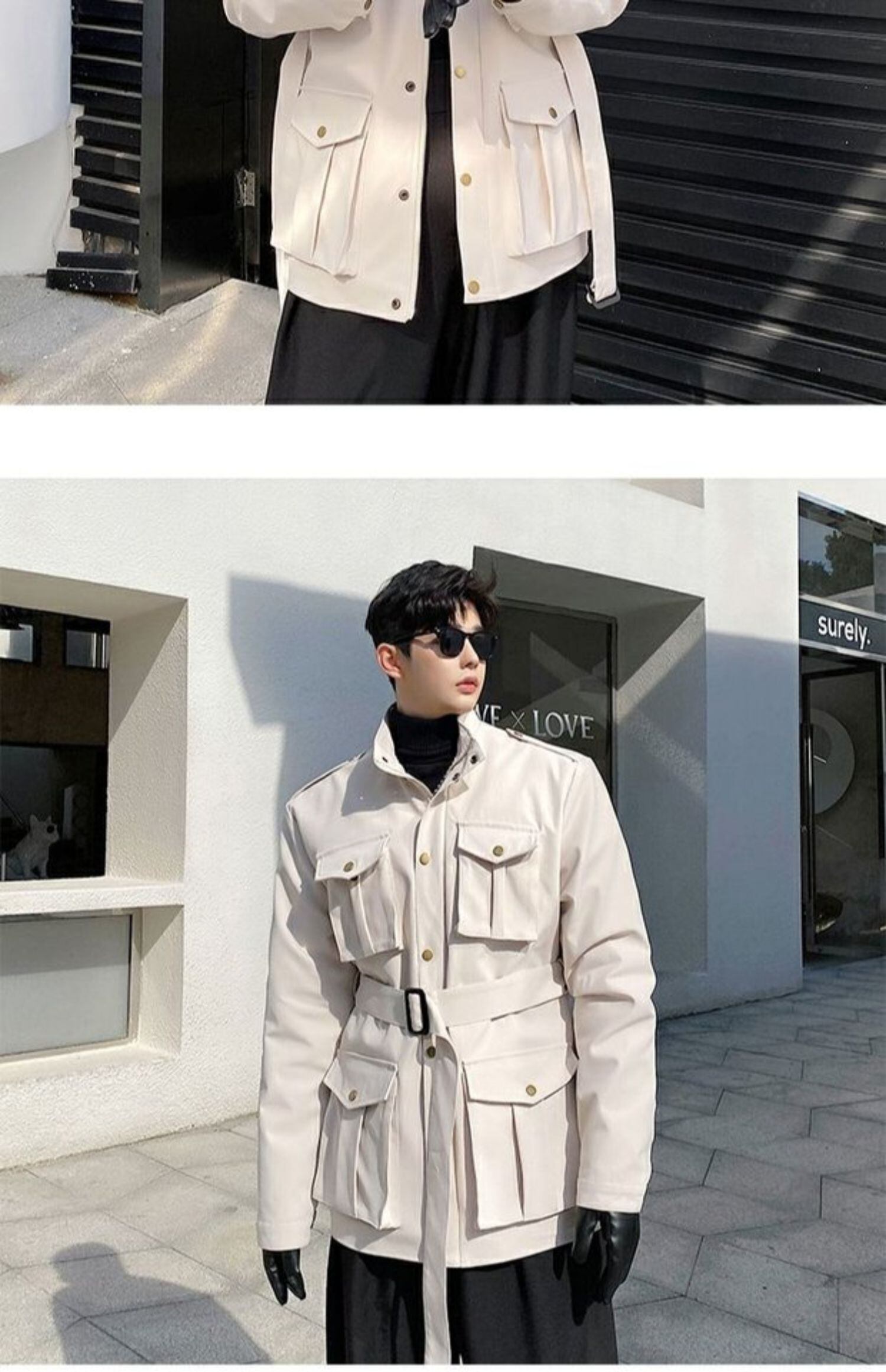 病みカッコイイ メンズファッション ストリートファッション ヒップホップ 個性的 裏原 オータムウィンタースタンダードスタイルスタンドカラーカラージャケット ルーズ レトロ レース 秋物 冬物 レースアップ ポケット多め マルチポケット ✝ おしゃれ メンズ 61696798949