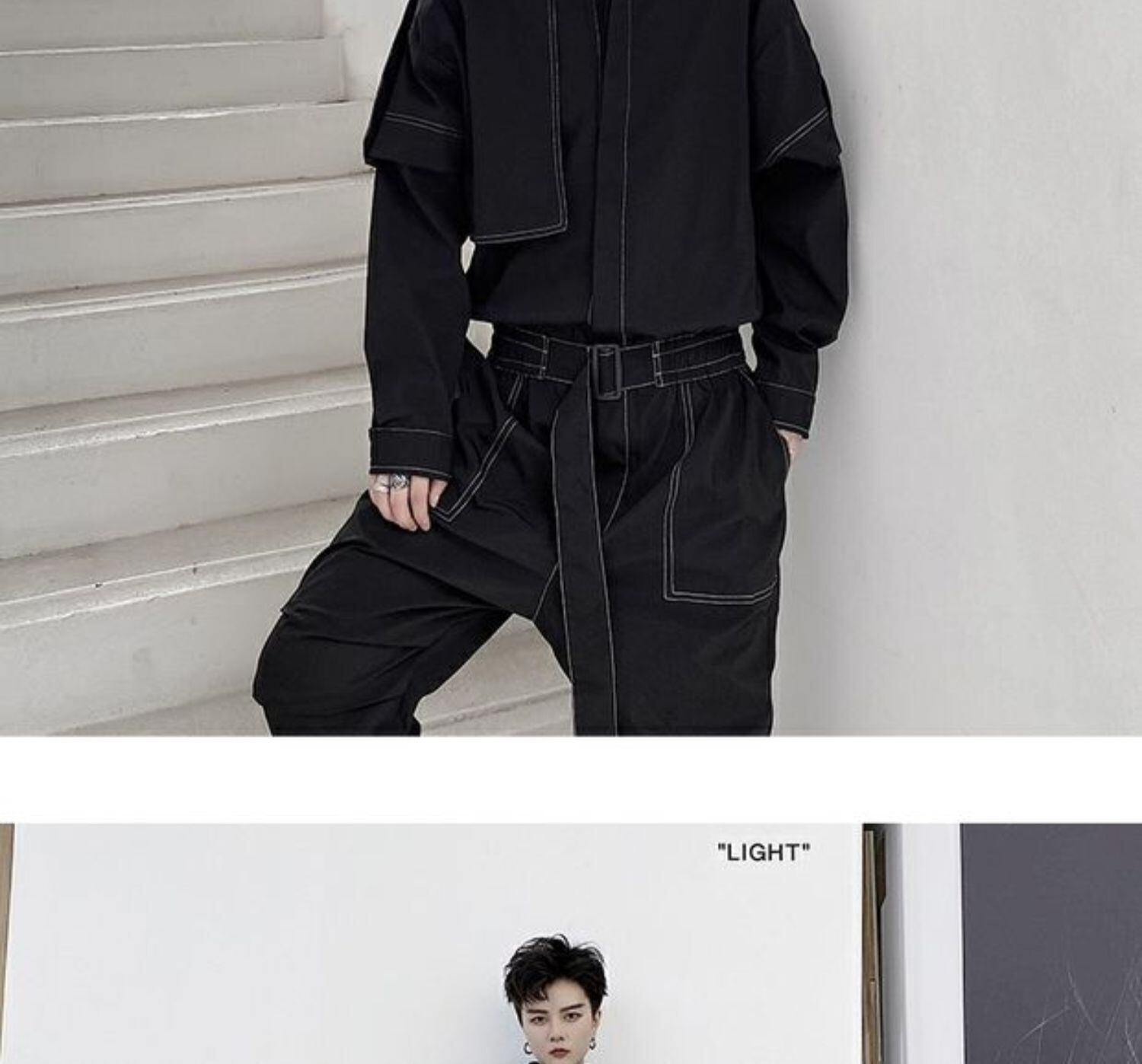病みカッコイイ メンズファッション ストリートファッション ヒップホップ 個性的 裏原 スタンダードジャンプスーツ オールインワン ルーズスプリングオータム ロング レトロ 春物 秋物 ✝ おしゃれ メンズ 69468127107