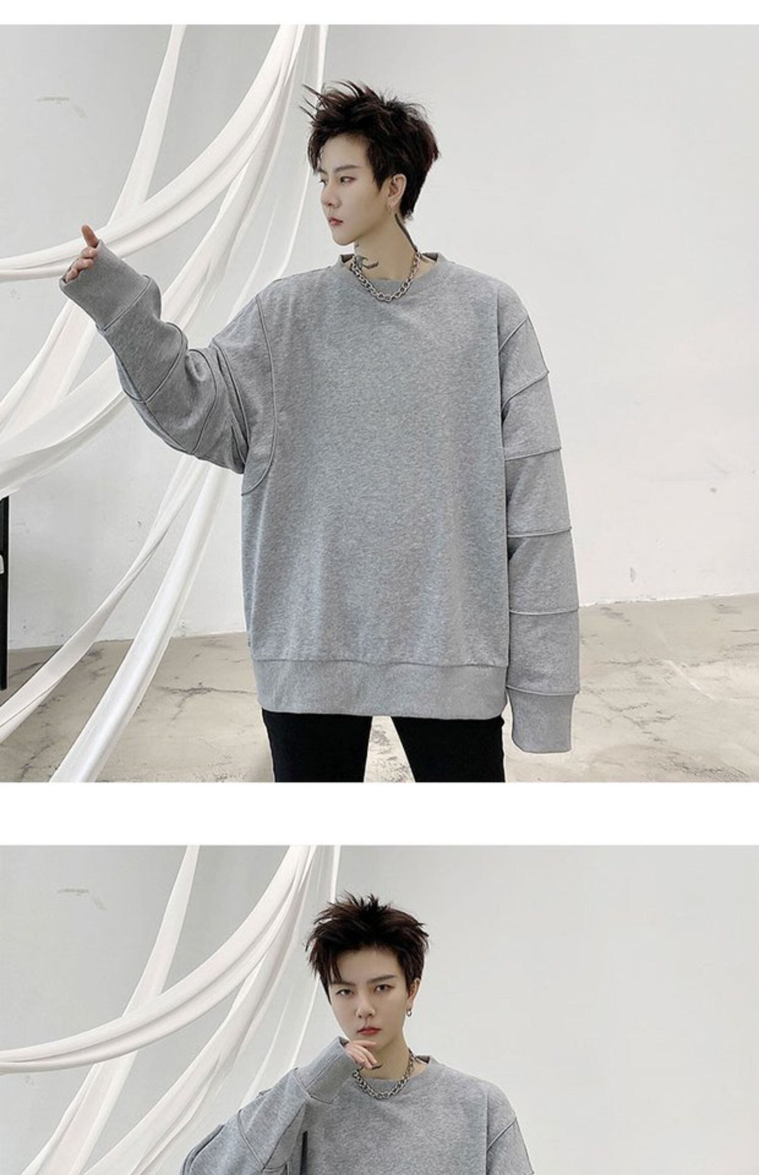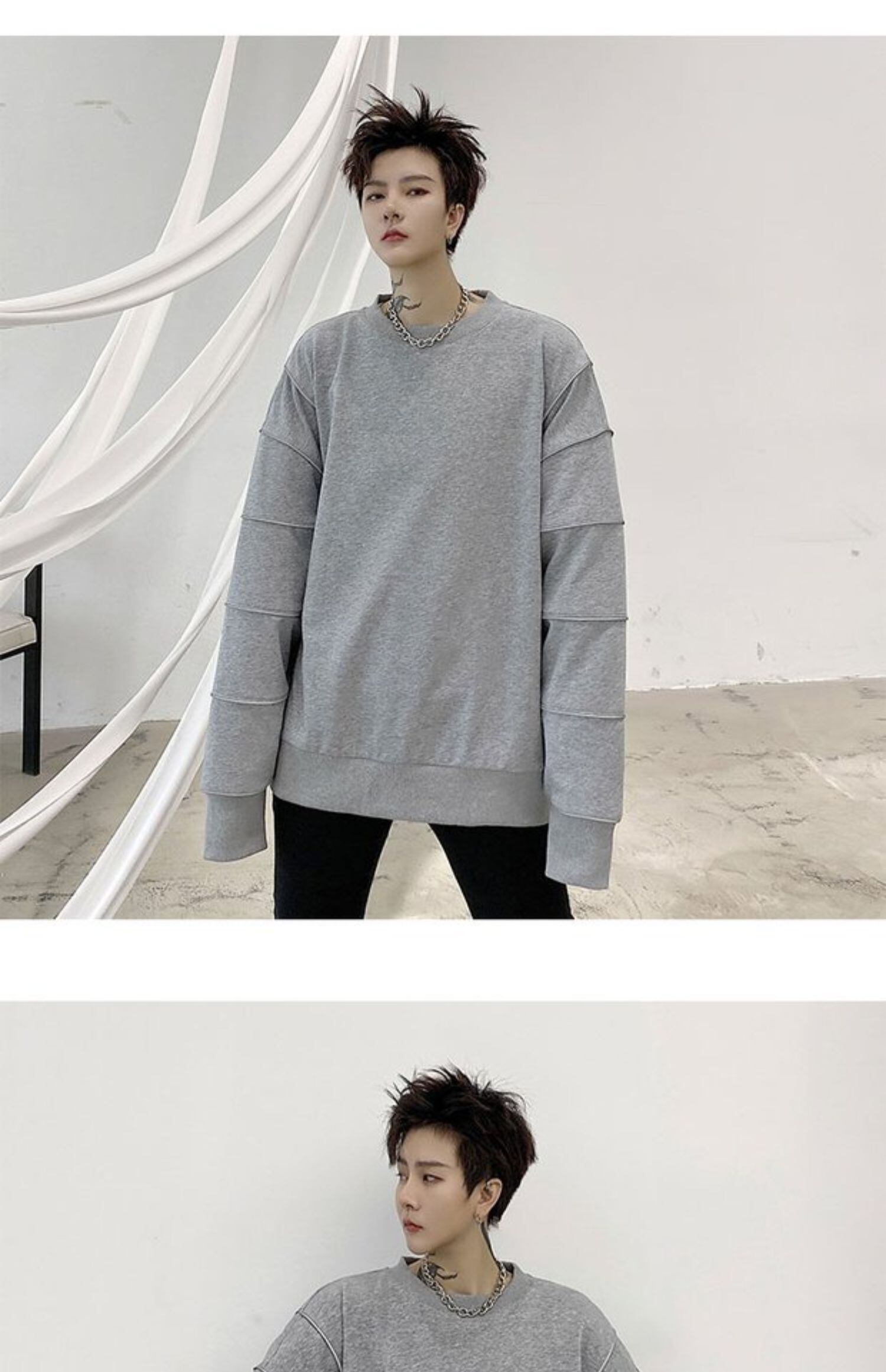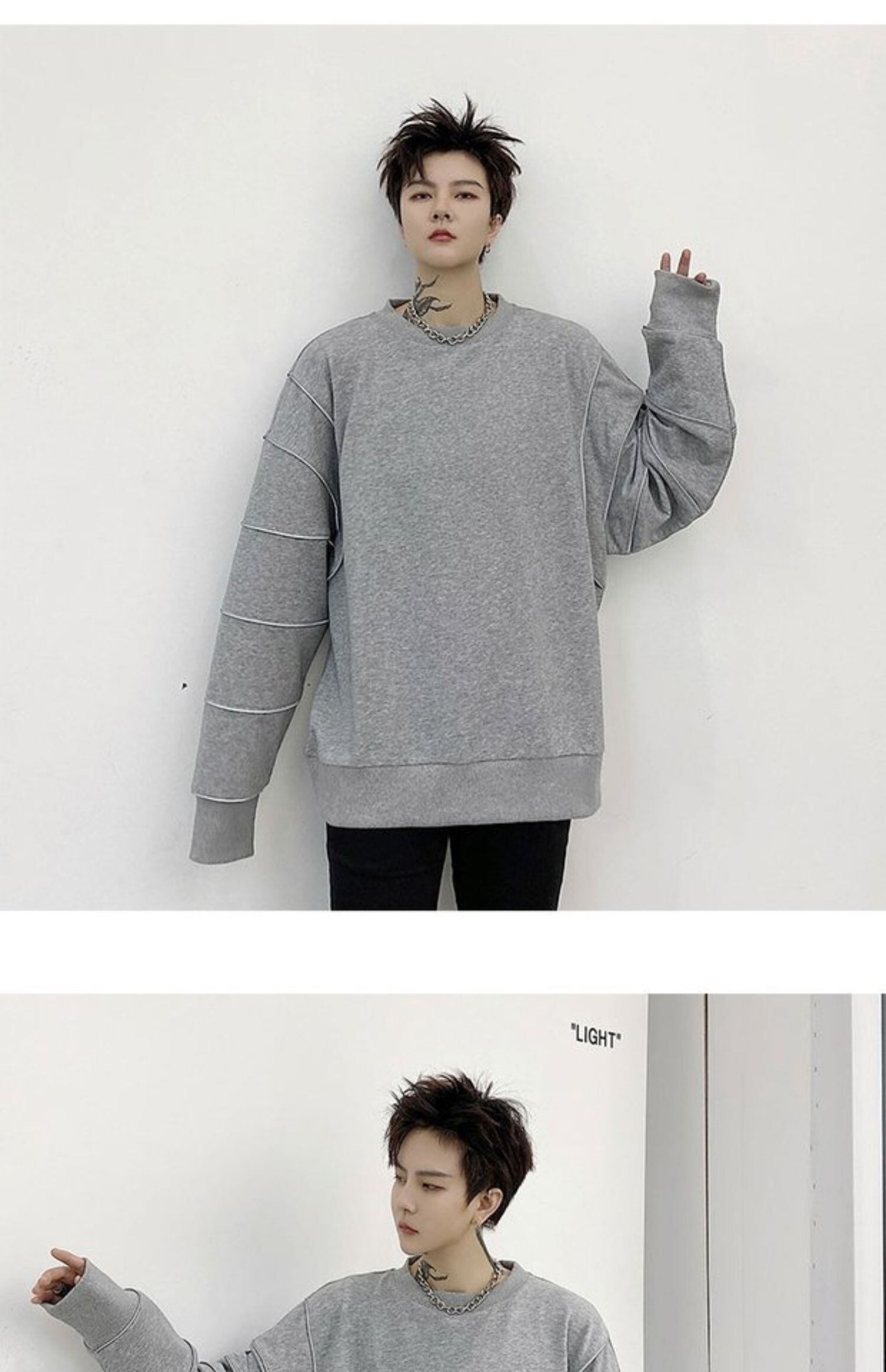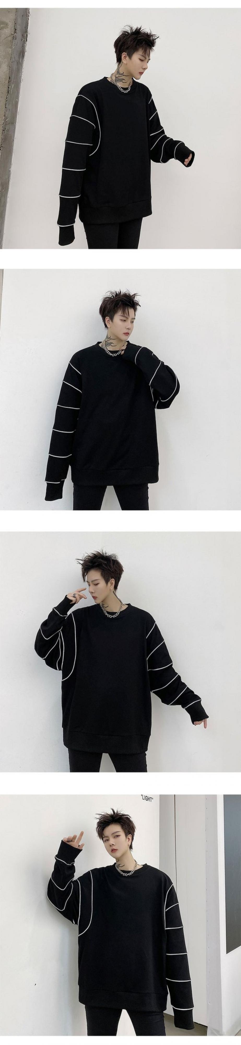 病みカッコイイ メンズファッション ストリートファッション ヒップホップ 個性的 裏原 スプリングストライプラウンドネックセーター ルーズシャツ プルオーバー 春物 Oネック ✝ おしゃれ メンズ 97895758914
