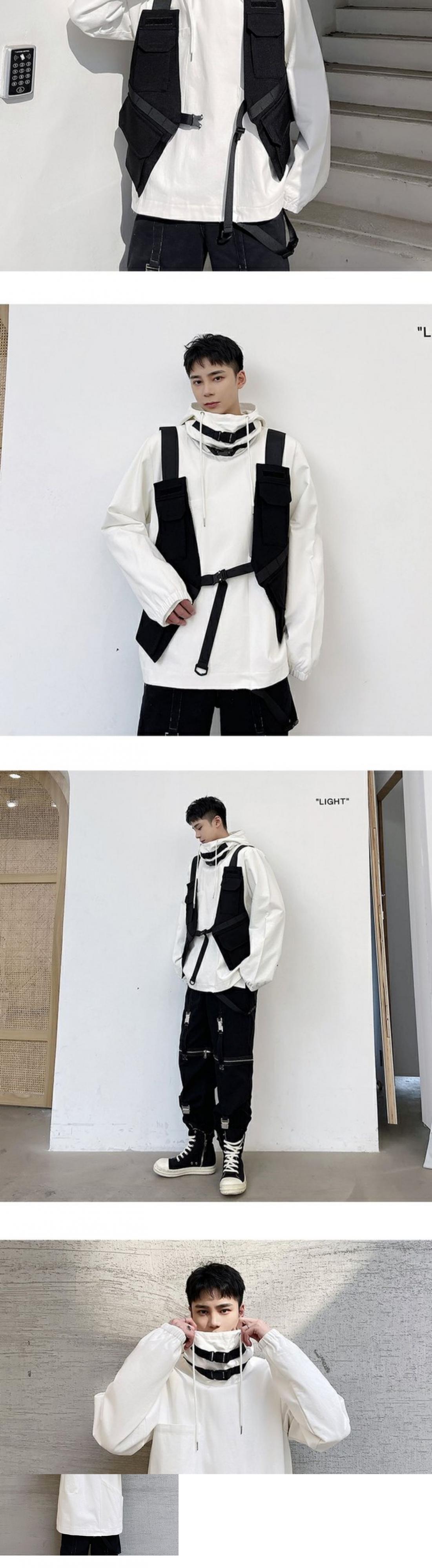 病みカッコイイ メンズファッション ストリートファッション ヒップホップ 個性的 裏原 カラーフードオーバーオール ジャケット バンドプルオーバー スプリングオータム 春物 秋物 ✝ おしゃれ メンズ 17635029718