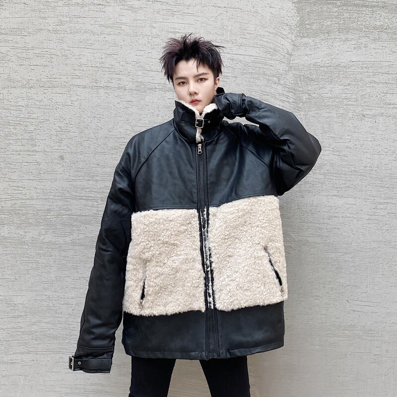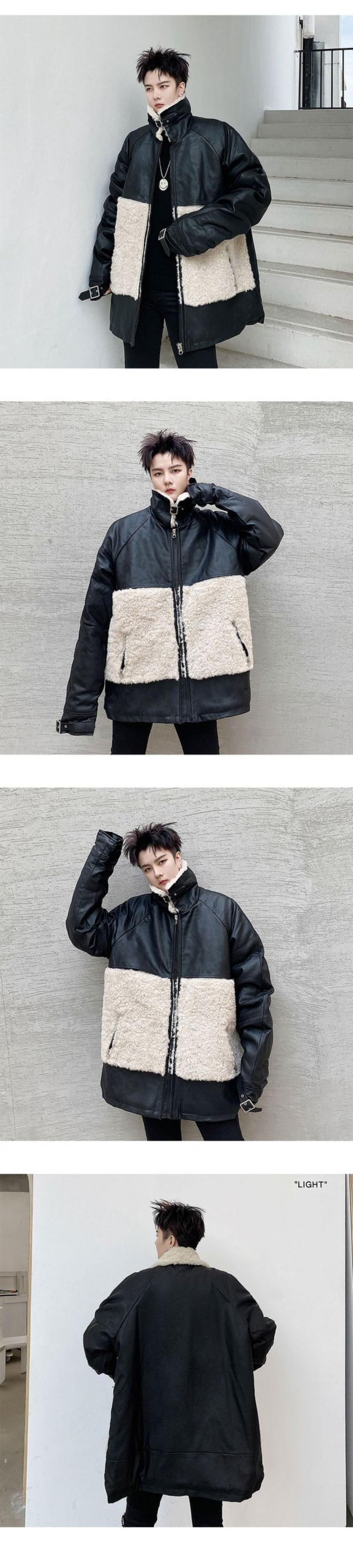 病みカッコイイ メンズファッション ストリートファッション ヒップホップ 個性的 裏原 ウィンターカラールーズファーレザージャケット コットン 冬物 ステッチ ✝ おしゃれ メンズ 37333546523