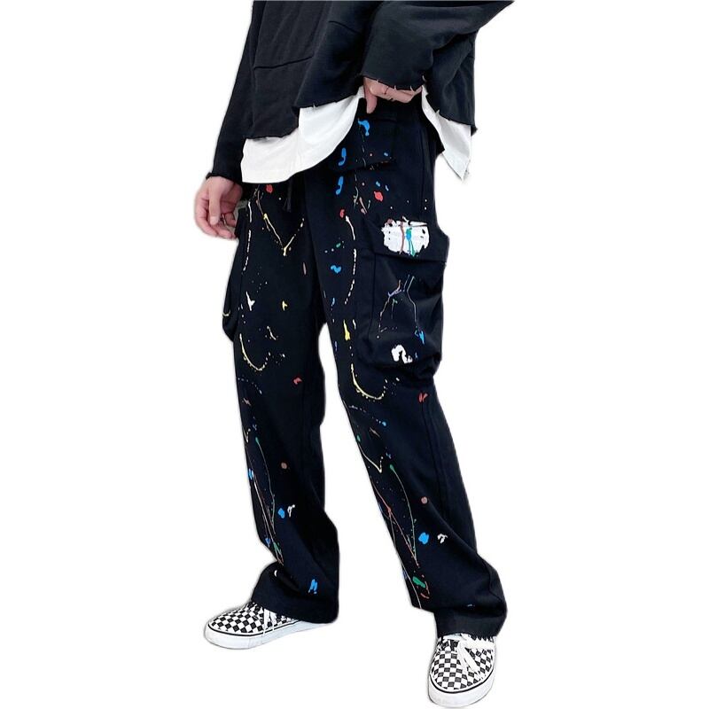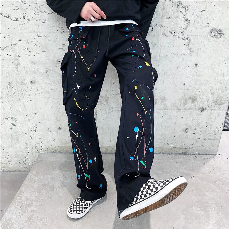 病みカッコイイ メンズファッション ストリートファッション ヒップホップ 個性的 裏原 プリント柄オーバーオール カジュアルパンツ ルーズスタイルスタンダード レトロ ストリート ✝ おしゃれ メンズ 58902998215