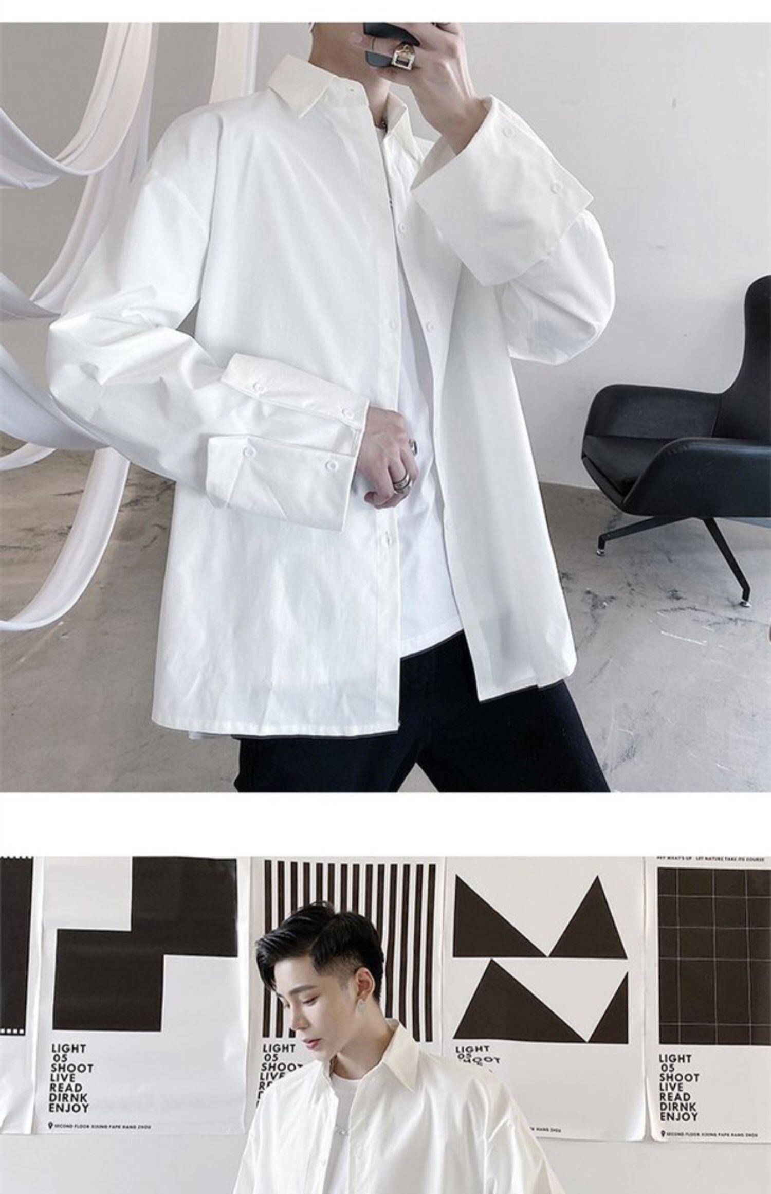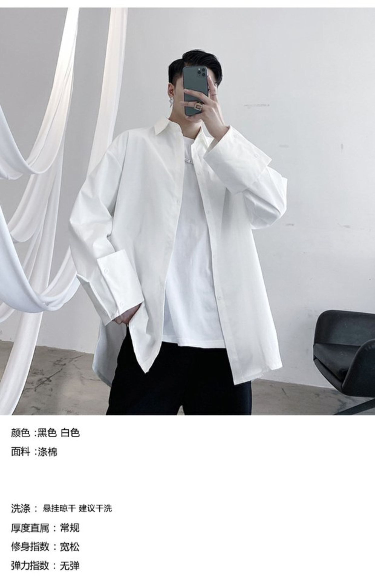 病みカッコイイ メンズファッション ストリートファッション ヒップホップ 個性的 裏原 スプリングスリーブシャツ ルーズソリッド カラーカジュアル ロング 春物 ソリッドカラー ✝ おしゃれ メンズ 527647521