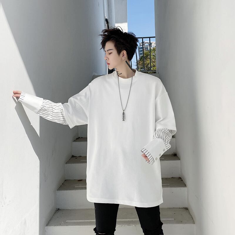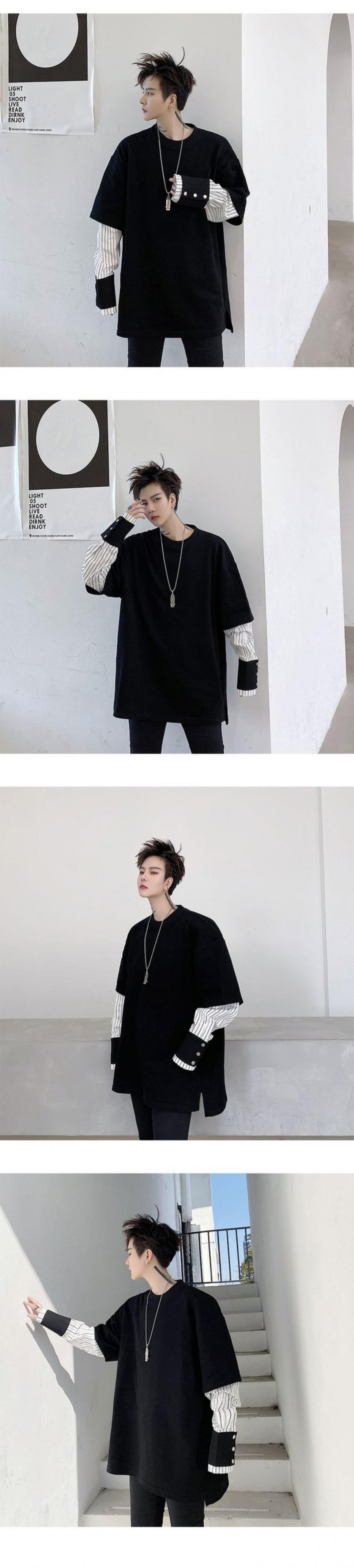 病みカッコイイ メンズファッション ストリートファッション ヒップホップ 個性的 裏原 スプリングストライプセーター ルーズトップス シャツ ロング 春物 ステッチ ✝ おしゃれ メンズ 67575904159