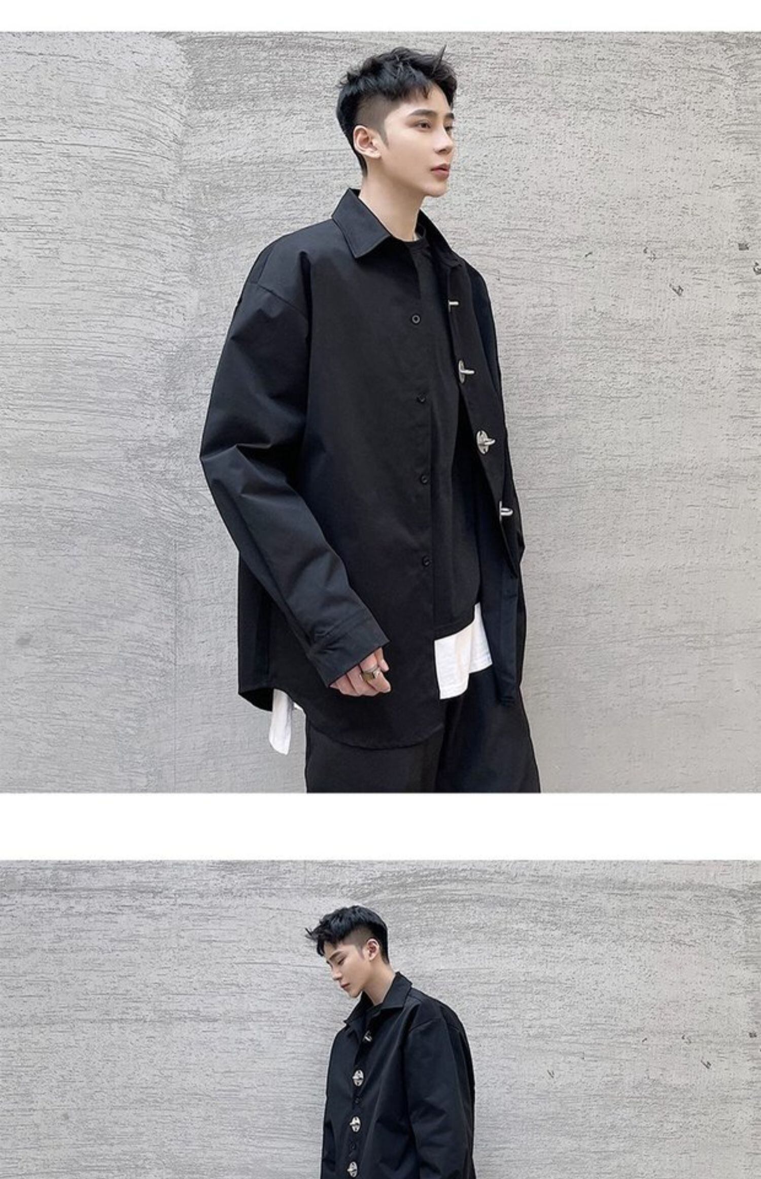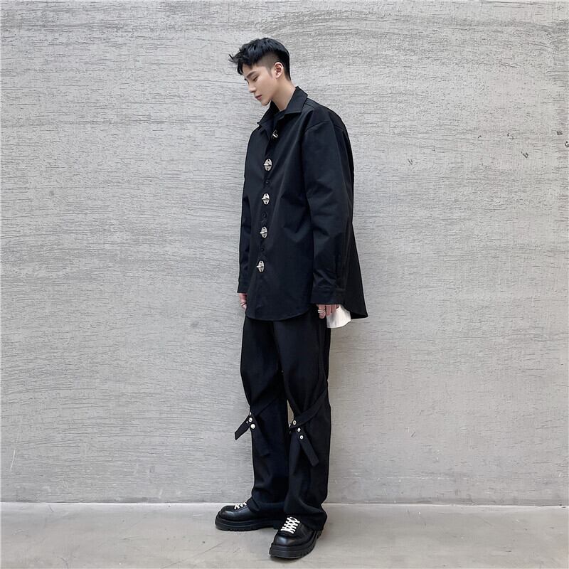 病みカッコイイ メンズファッション ストリートファッション ヒップホップ 個性的 裏原 スプリングカラーシャツ メタルレッドカジュアル ロング 春物 ピュア ✝ おしゃれ メンズ 91630063600
