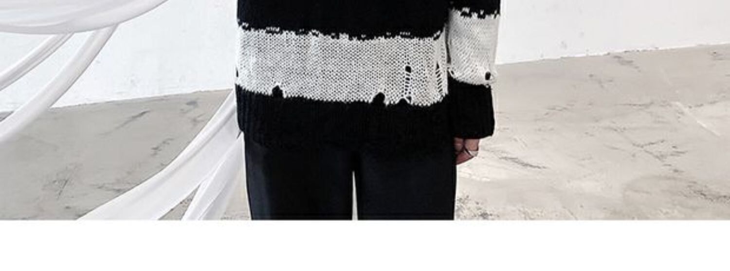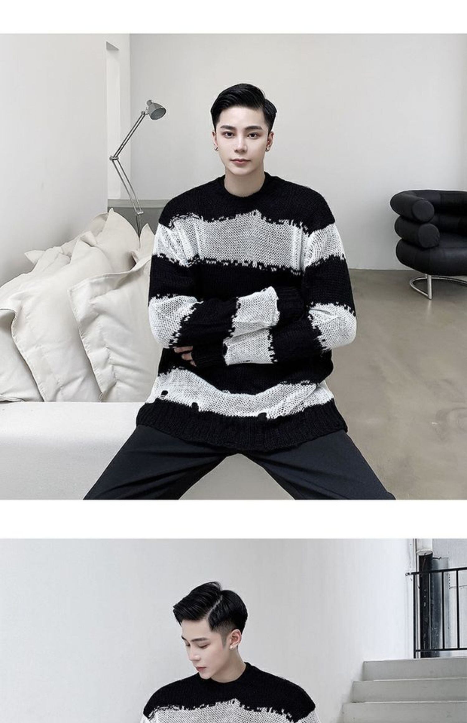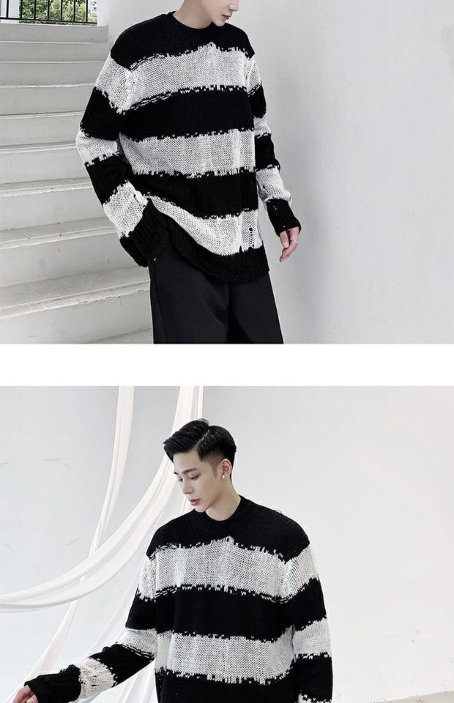 病みカッコイイ メンズファッション ストリートファッション ヒップホップ 個性的 裏原 オータムウィンタースタンダードブラックホワイトストライプセーター ルーズ レトロ 秋物 冬物 ✝ おしゃれ メンズ 94347434568