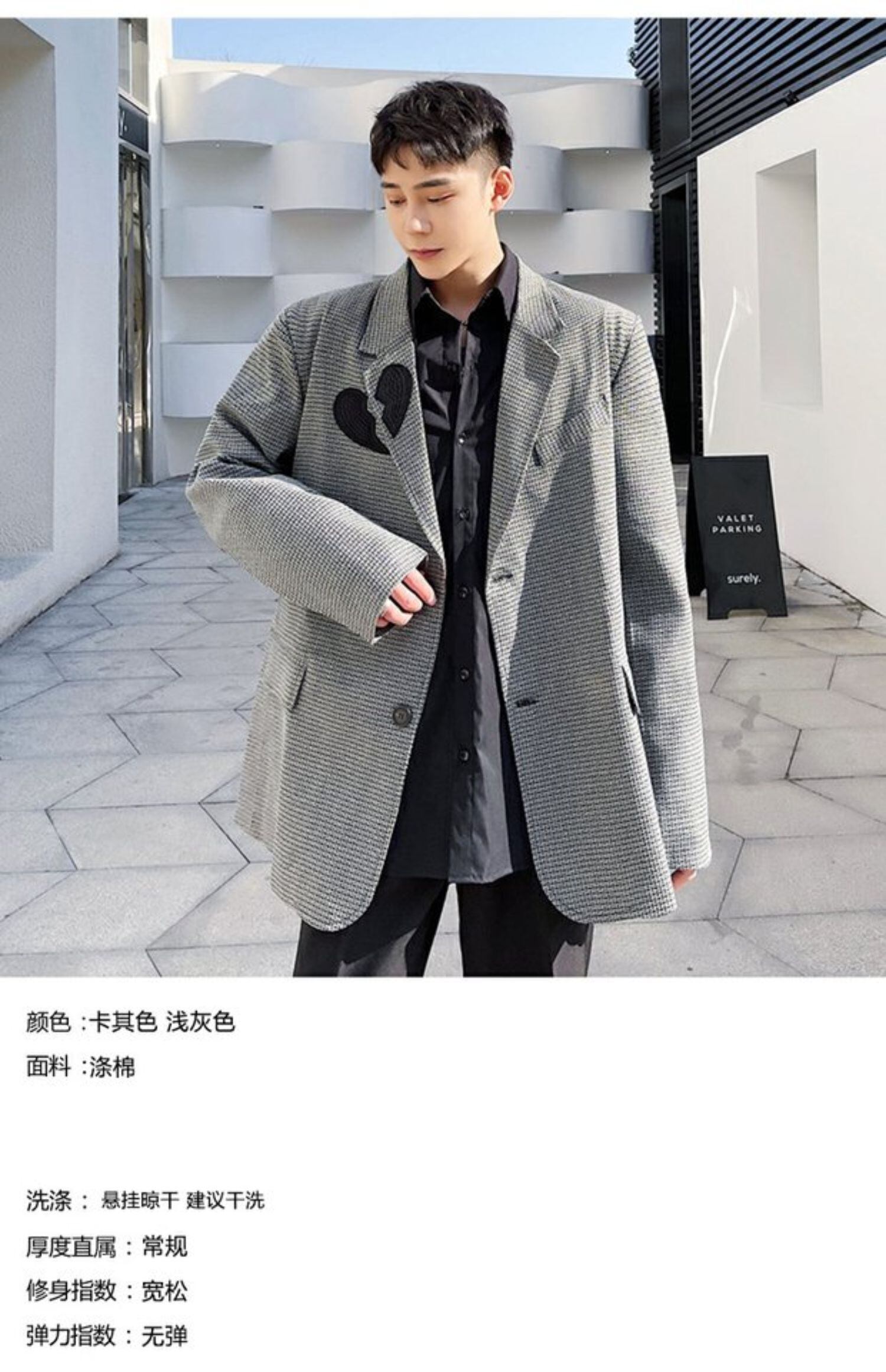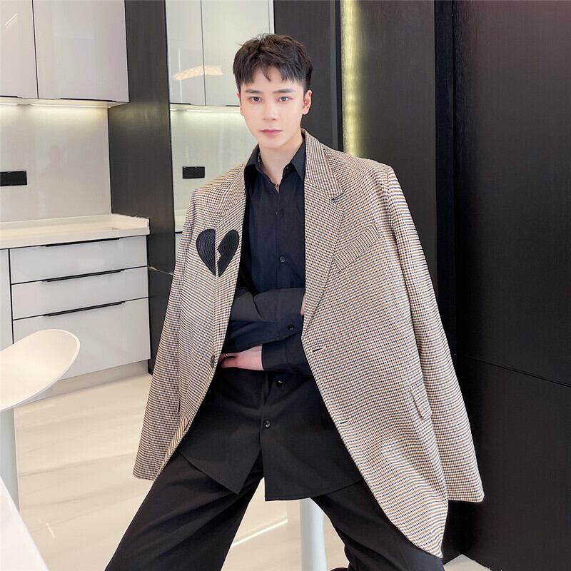 病みカッコイイ メンズファッション ストリートファッション ヒップホップ 個性的 裏原 スプリングスタイル格子柄カジュアルブレザー 春物 ✝ おしゃれ メンズ 18557178617