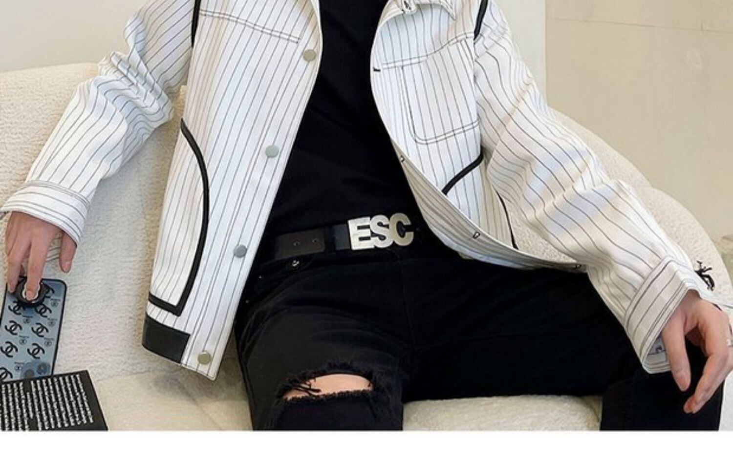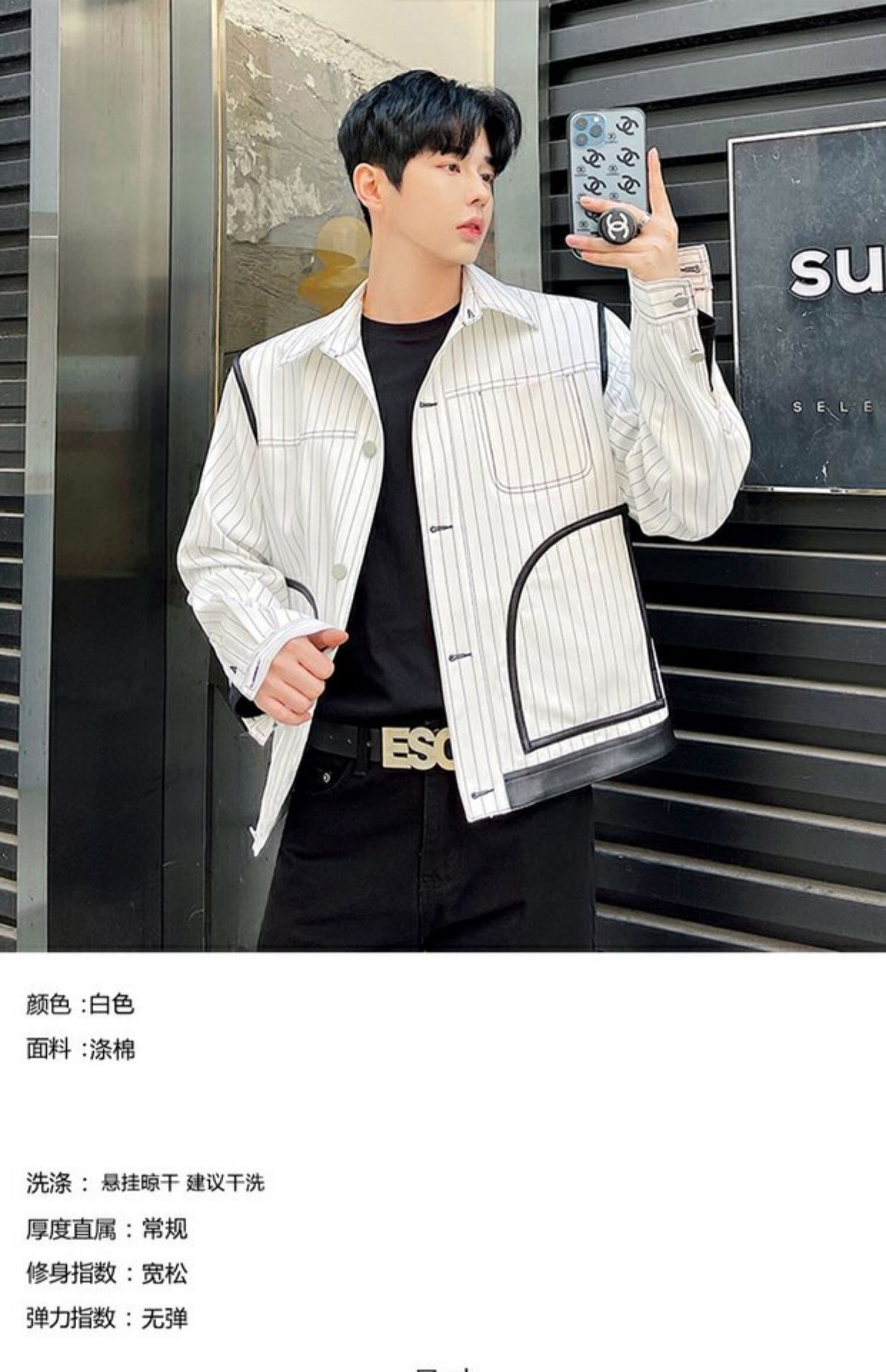 病みカッコイイ メンズファッション ストリートファッション ヒップホップ 個性的 裏原 ストライプジャケット ショートカジュアルスプリングオータムレッドトップス 春物 秋物 ✝ おしゃれ メンズ 57286199997