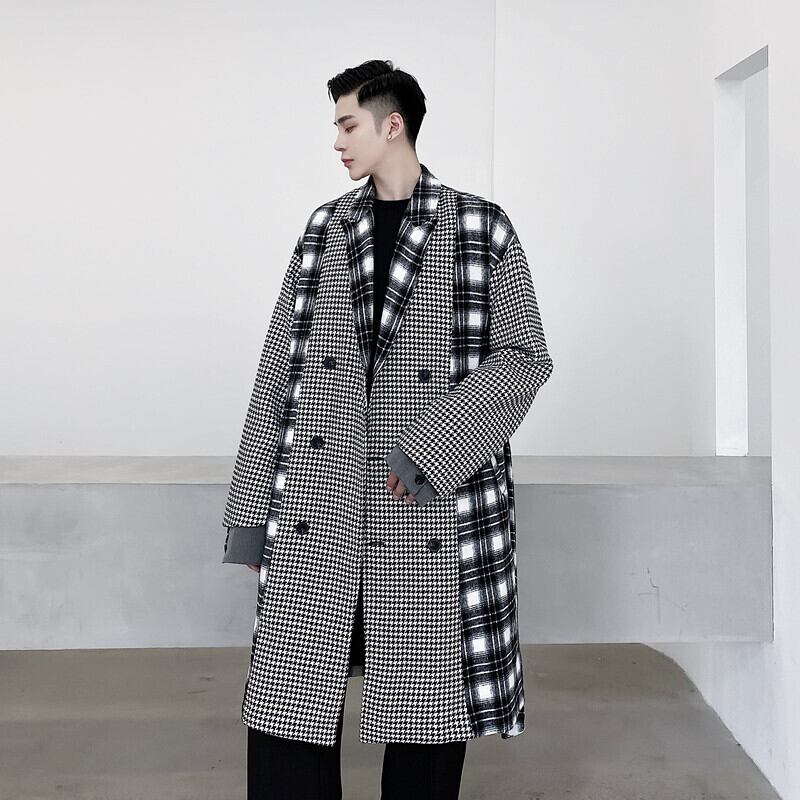 病みカッコイイ メンズファッション ストリートファッション ヒップホップ 個性的 裏原 オータムウィンター格子柄コート ロングスタンダードスタイル レトロ レース 秋物 冬物 レースアップ ✝ おしゃれ メンズ 25303669766