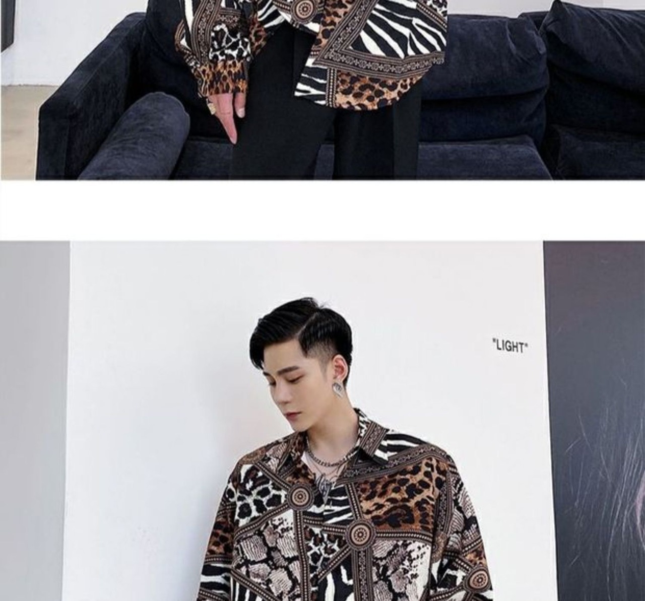 病みカッコイイ メンズファッション ストリートファッション ヒップホップ 個性的 裏原 レオパードプリント柄シャツ ルーズスタイルスプリングオータム薄手レッド ロング 春物 秋物 ✝ おしゃれ メンズ 17829165786
