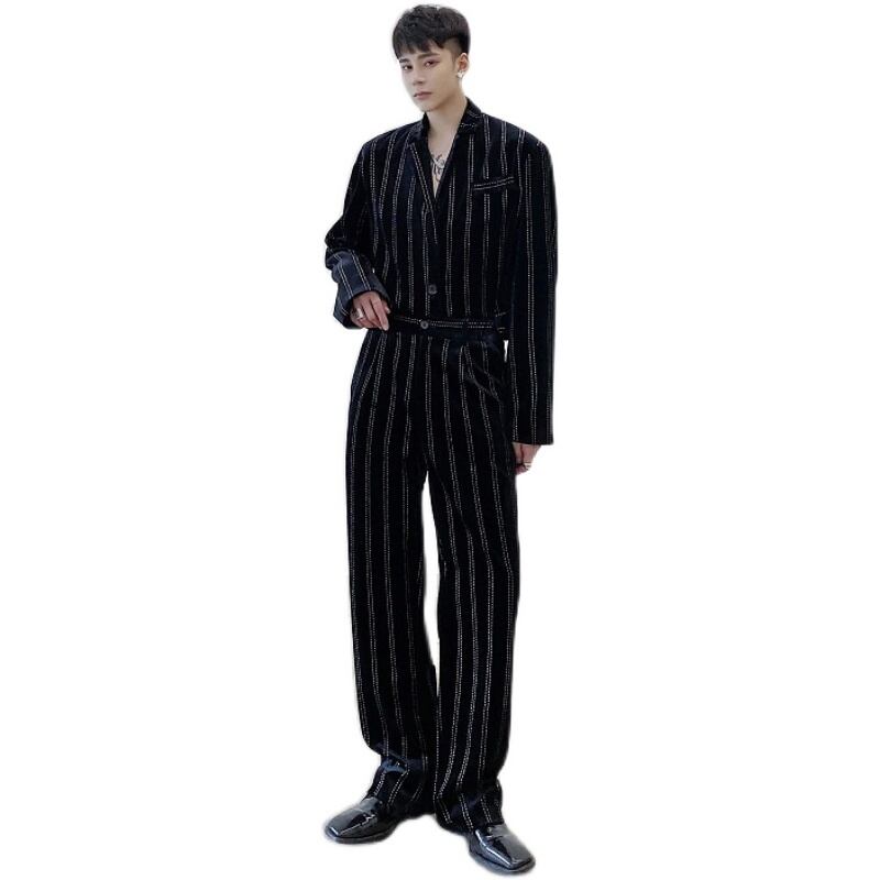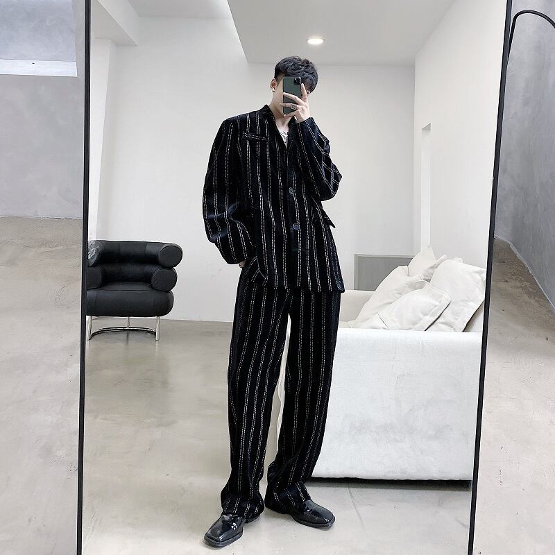 病みカッコイイ メンズファッション ストリートファッション ヒップホップ 個性的 裏原 スタンダードハイウェストウェスト薄手ストライプルーズベルベットカジュアルパンツ レトロ ✝ おしゃれ メンズ 6222661761