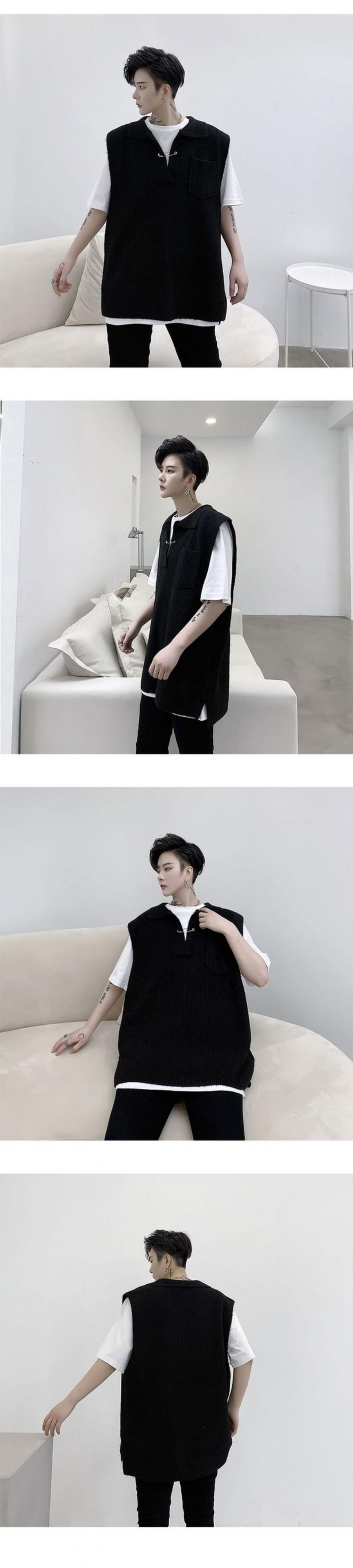 病みカッコイイ メンズファッション ストリートファッション ヒップホップ 個性的 裏原 オータムカラーセーター ルーズプルオーバー ノースリーブ 秋物 ピュア ✝ おしゃれ メンズ 45002979554
