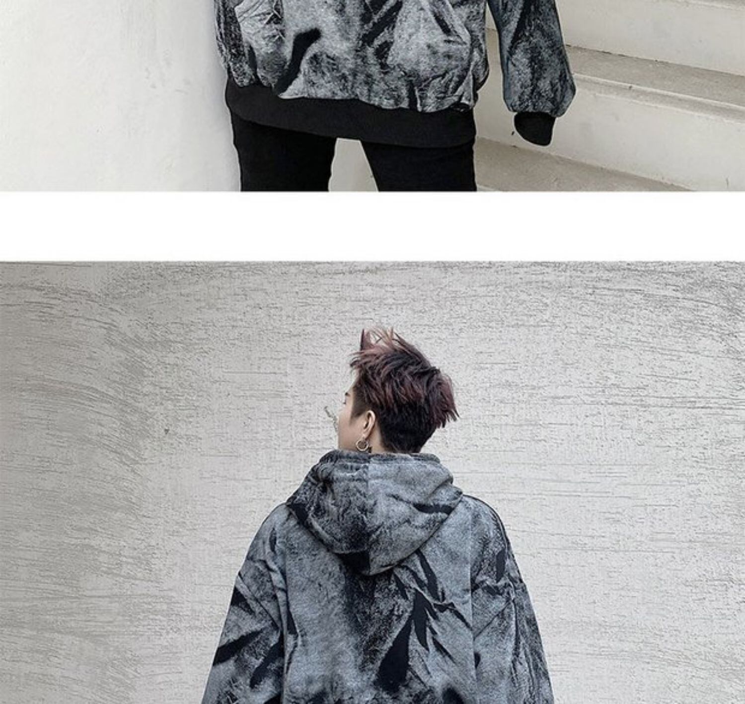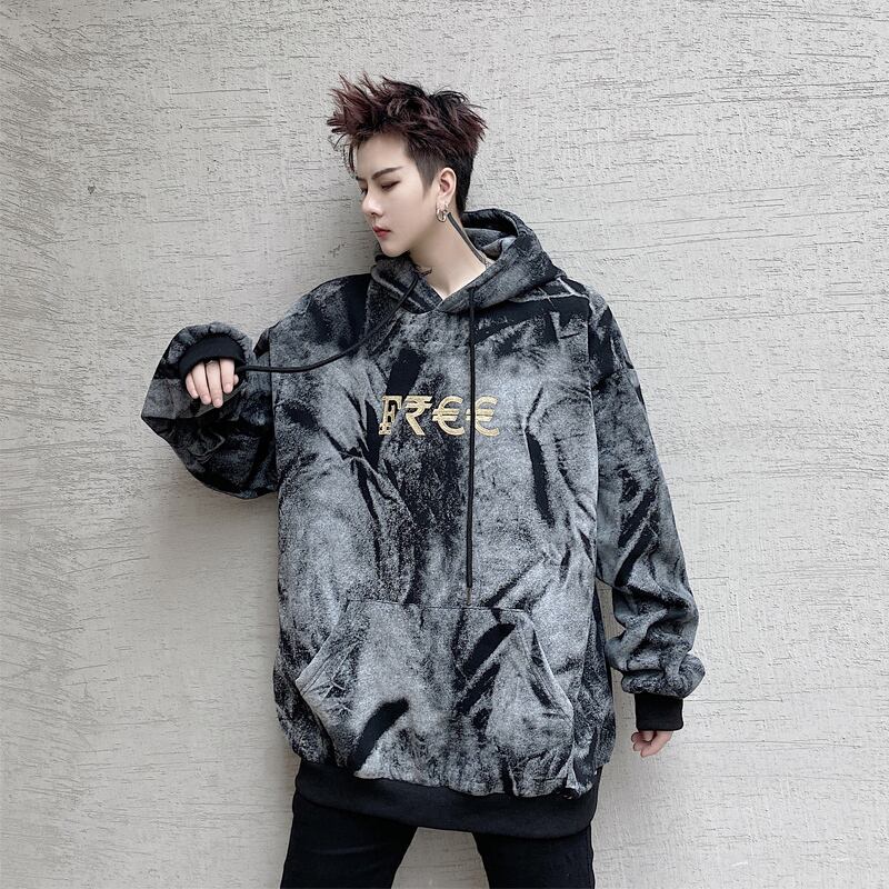 病みカッコイイ メンズファッション ストリートファッション ヒップホップ 個性的 裏原 ウィンターカラー刺繍フードセーター ルーズベルベットプルオーバー トップス 冬物 ✝ おしゃれ メンズ 85398391655