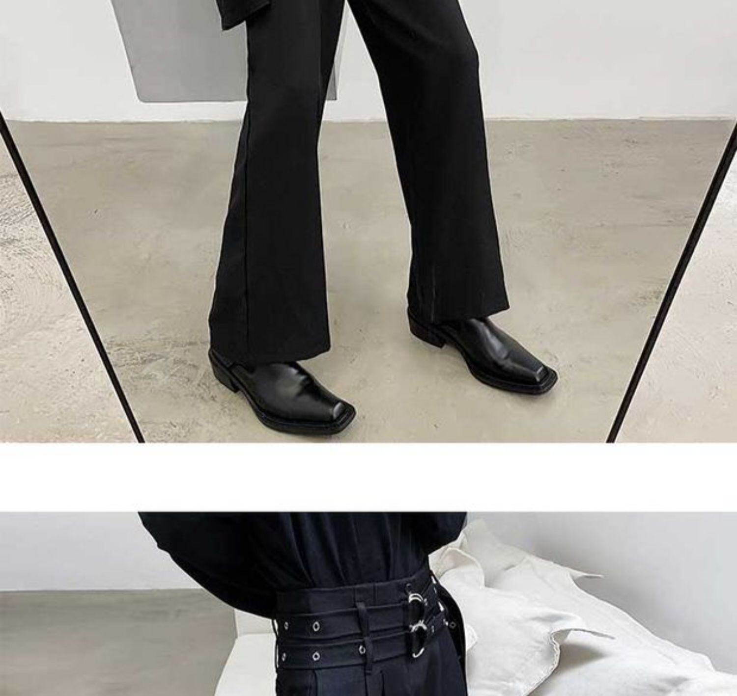 病みカッコイイ メンズファッション ストリートファッション ヒップホップ 個性的 裏原 スタンダードハイウェストウェストスリムブラックルーズパンツ カジュアル レトロ ✝ おしゃれ メンズ 84362009647
