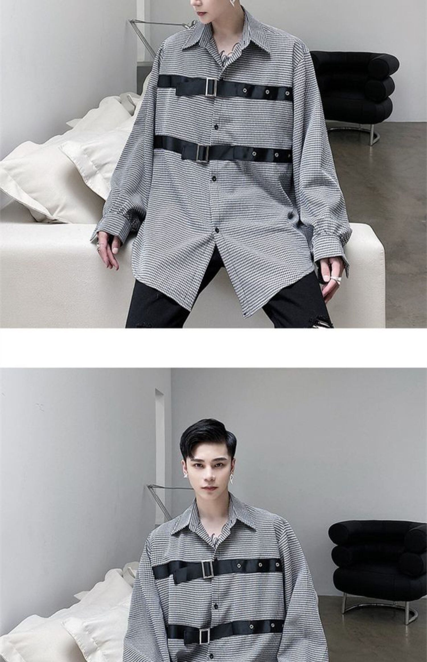 病みカッコイイ メンズファッション ストリートファッション ヒップホップ 個性的 裏原 オータムバンドシャツ ルーズスタンダード格子柄カジュアル ロング レトロ 秋物 ✝ おしゃれ メンズ 55176513283