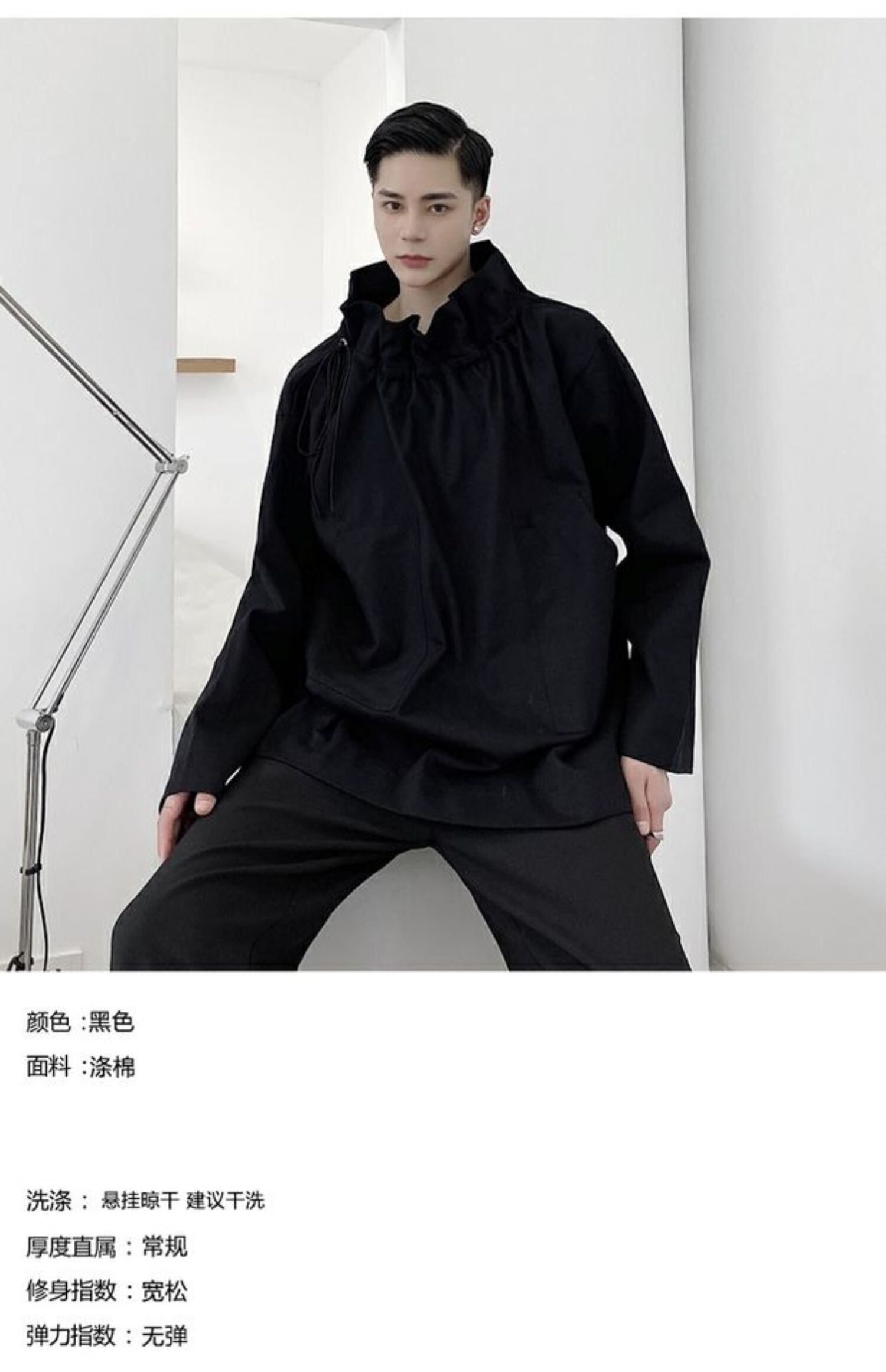 病みカッコイイ メンズファッション ストリートファッション ヒップホップ 個性的 裏原 オータムスタンダードカラーセーター ルーズダークブラックプルオーバー ジャケット レトロ 秋物 ✝ おしゃれ メンズ 47549812974