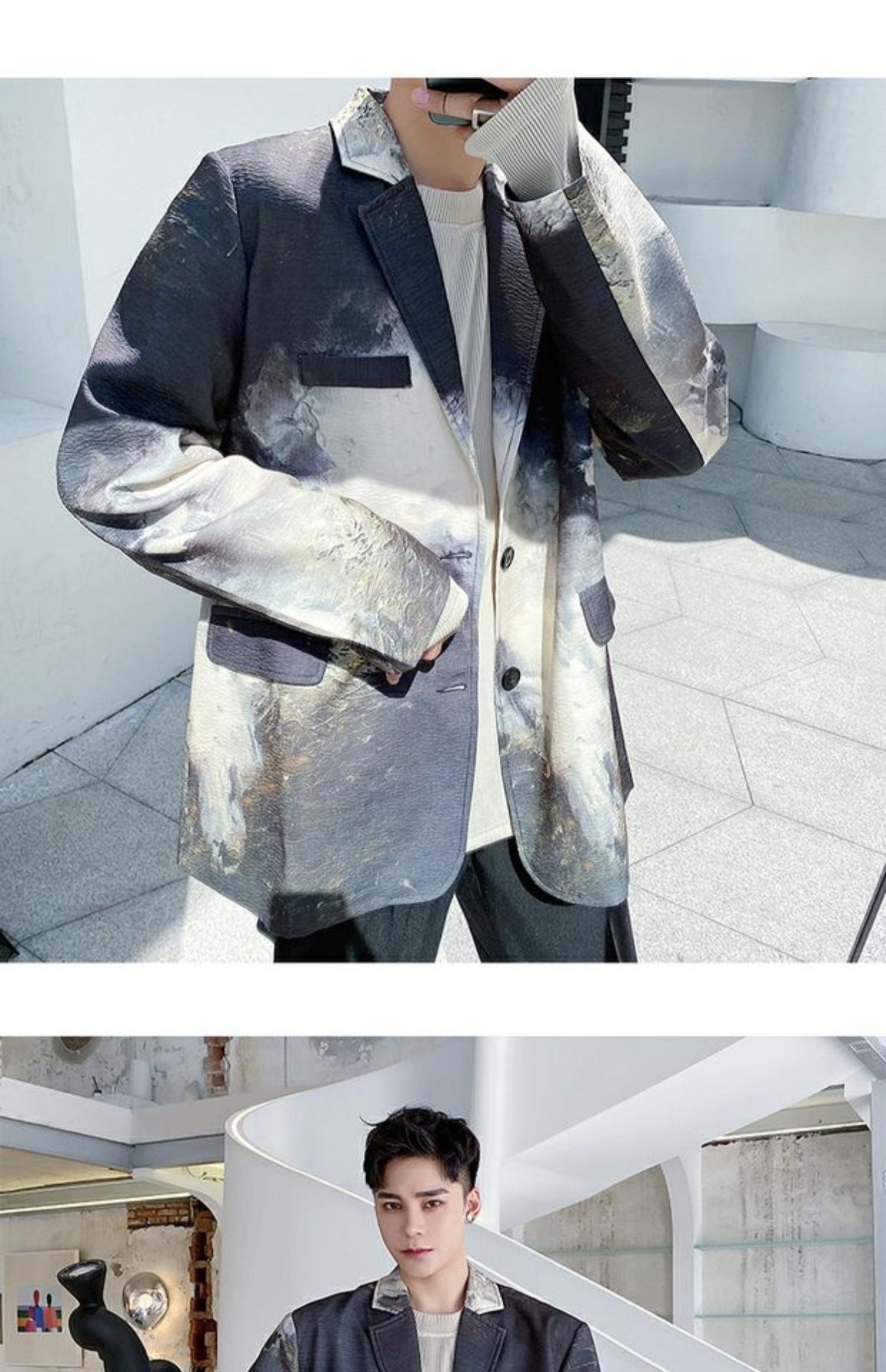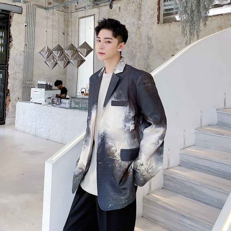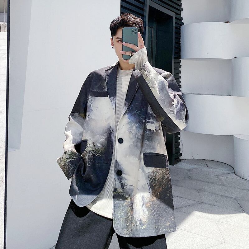 病みカッコイイ メンズファッション ストリートファッション ヒップホップ 個性的 裏原 オータムスタンダードプリント柄カジュアルルーズレッドジャケット レトロ 秋物 ✝ おしゃれ メンズ 83394500473