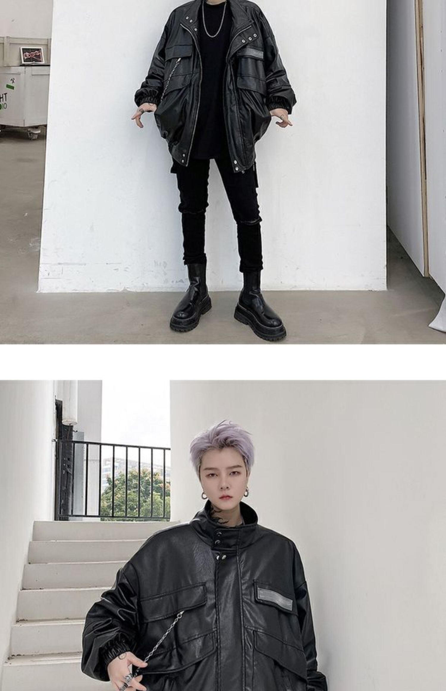 病みカッコイイ メンズファッション ストリートファッション ヒップホップ 個性的 裏原 オータムウィンタースタイルレザージャケット ルーズカラースタンダード レトロ 秋物 冬物 ✝ おしゃれ メンズ 65768390109