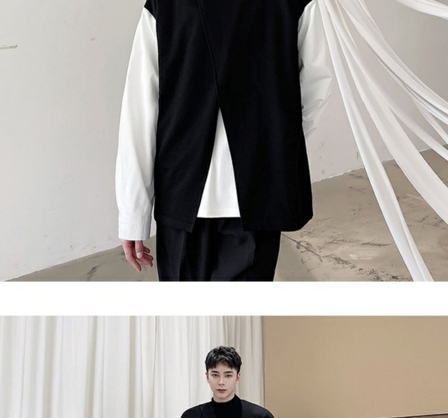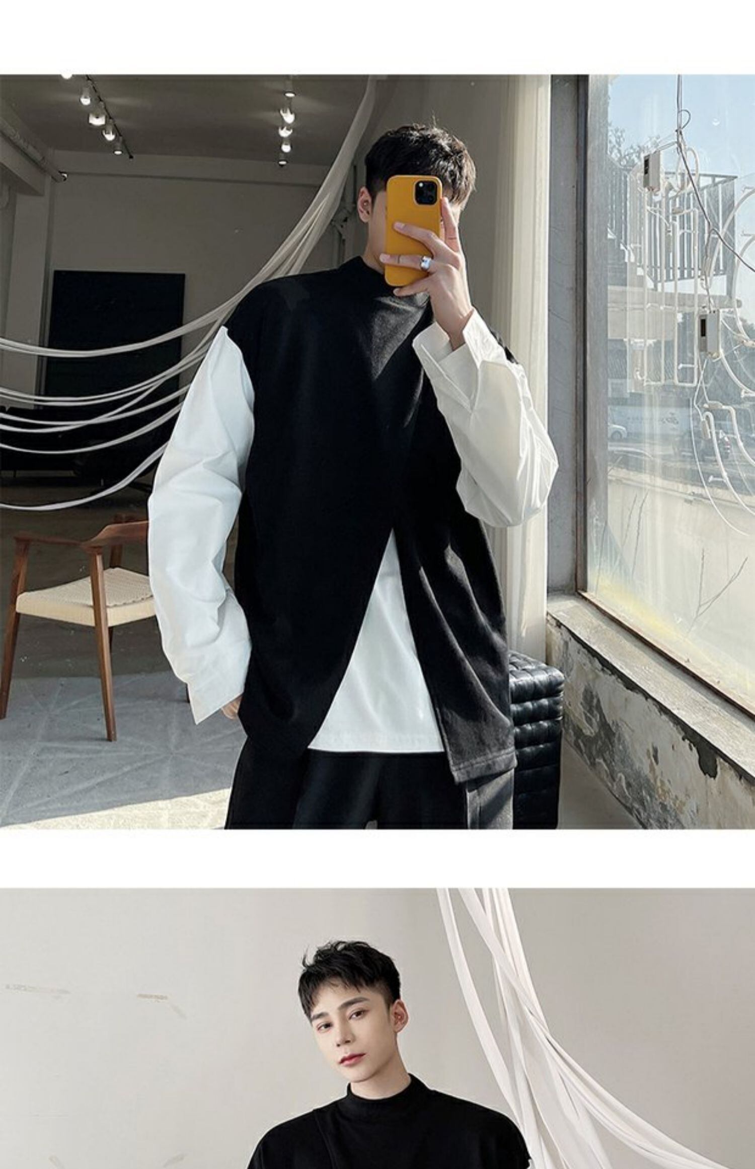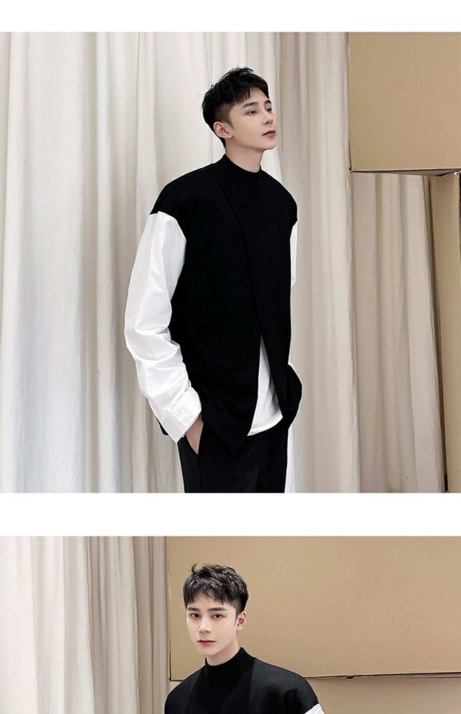 病みカッコイイ メンズファッション ストリートファッション ヒップホップ 個性的 裏原 スプリングブラックホワイトカラープルオーバー セーター ルーズブラウス レッドジャケット 春物 ✝ おしゃれ メンズ 35782126543