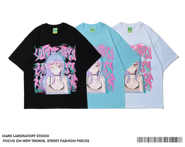 病みカッコイイ メンズファッション ストリートファッション ヒップホップ 個性的 裏原 サマープリントショートTシャツ ルーズカジュアル ストリート 夏物 ✝ メンズファッション65016589830