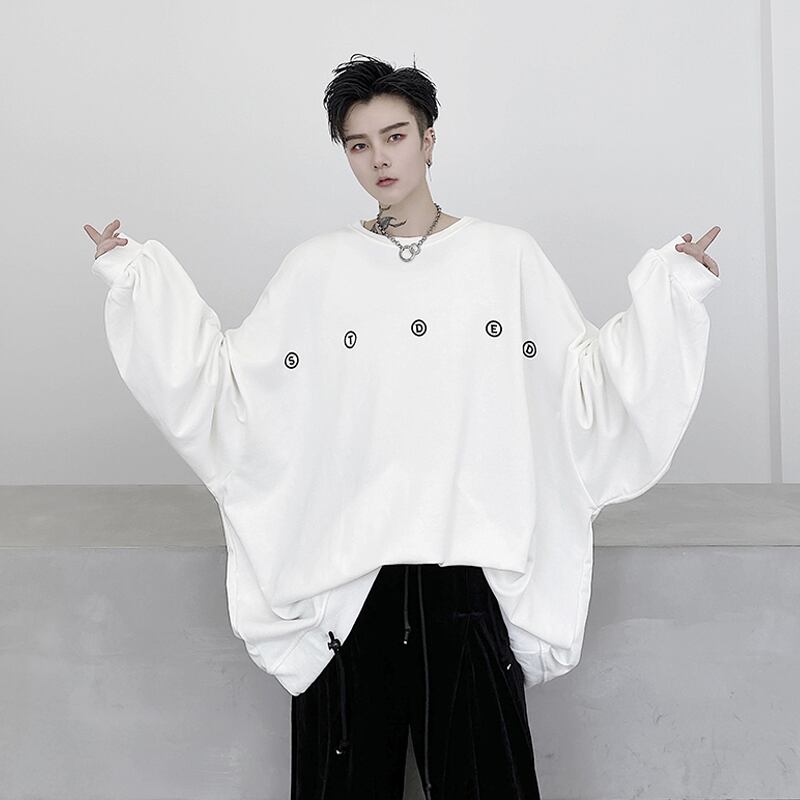 病みカッコイイ メンズファッション ストリートファッション ヒップホップ 個性的 裏原 プルオーバー セーター ルーズ薄手刺繍スリーブシャツ ✝ おしゃれ メンズ 87243341365