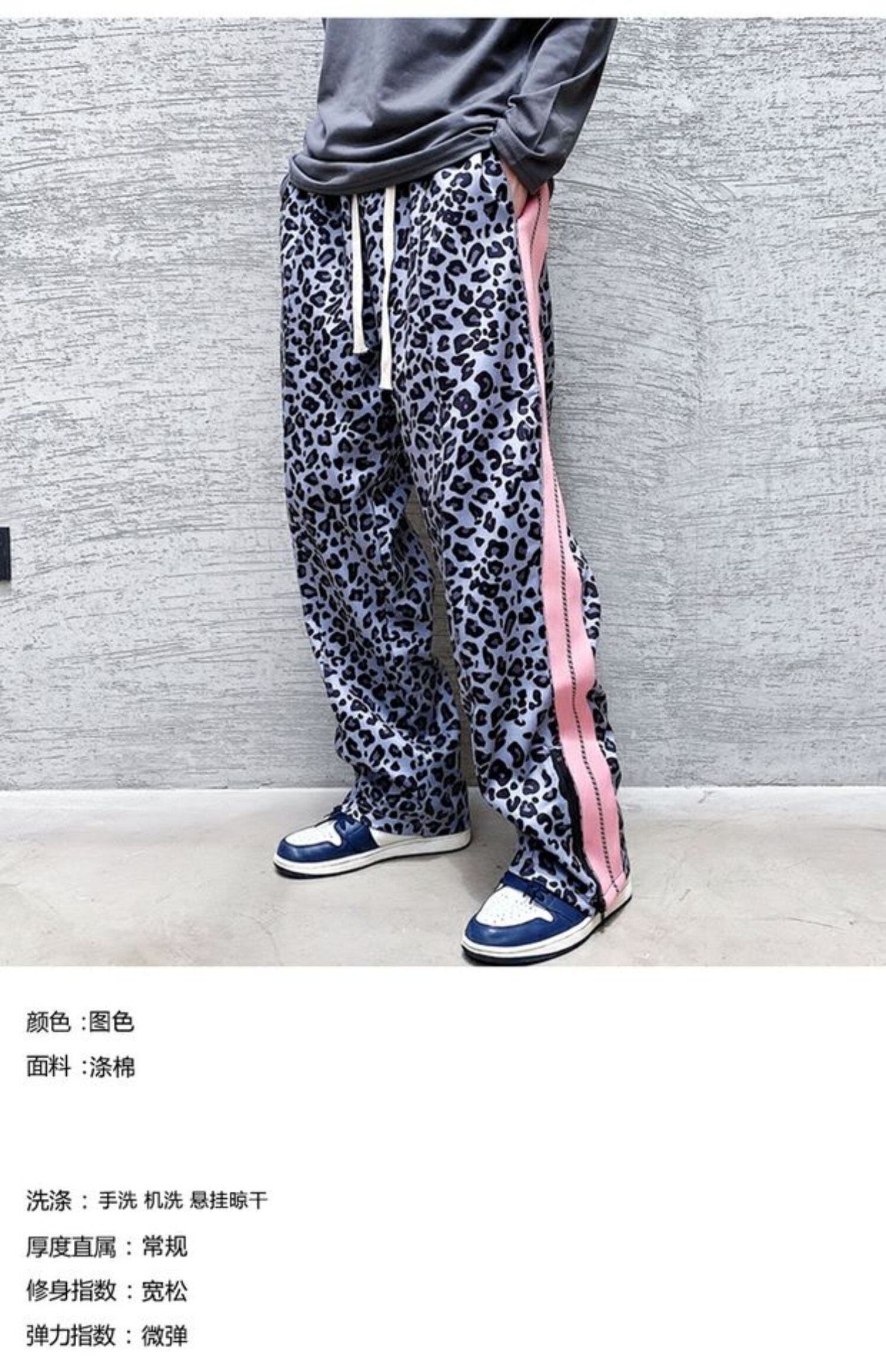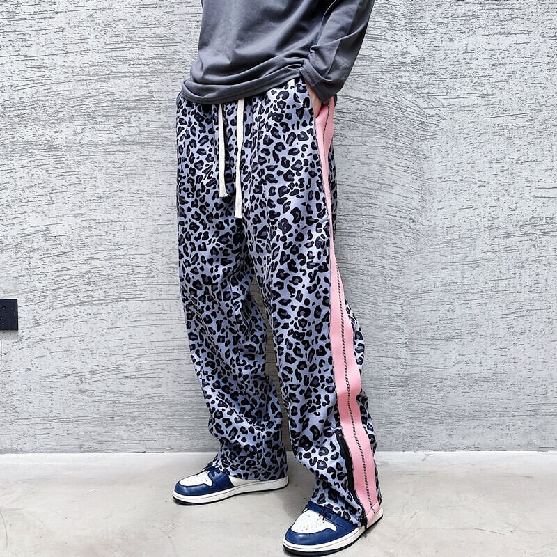 病みカッコイイ メンズファッション ストリートファッション ヒップホップ 個性的 裏原 スタイルレオパードプリント柄カジュアルパンツ ルーズストライプ ✝ おしゃれ メンズ 23617987382